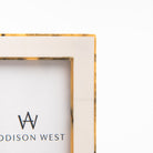 A distinctive design featuring a striking white inlay pattern bordered by warm, tortoiseshell. Backed with an easel prop stand for effortless tabletop or shelf display. Mx and match or get the whole collection.
