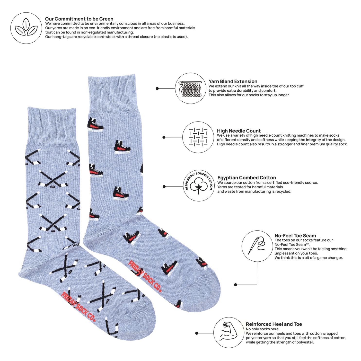 Feel like your gliding freely with the cool air on your cheeks, get your stick out on the ice in our mismatched Skate and Stick Hockey men's socks.