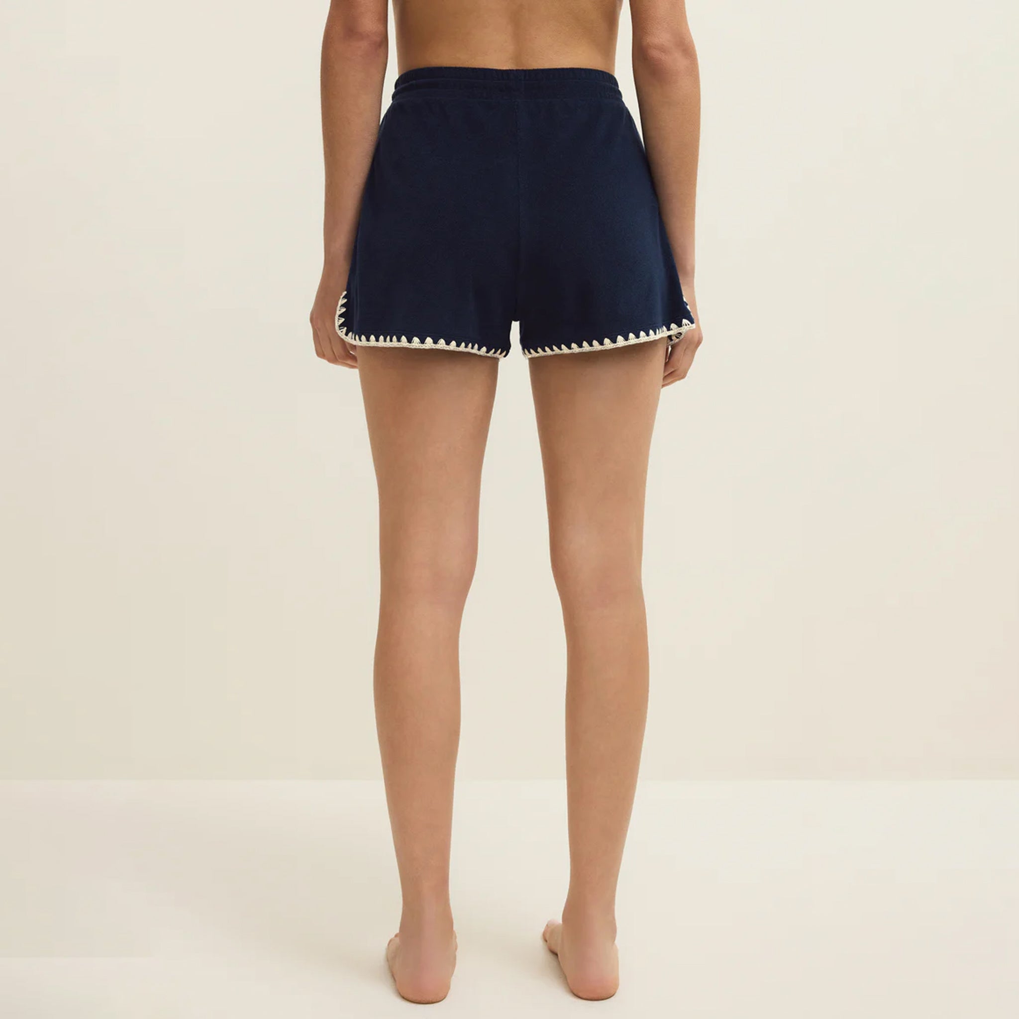 It’s all in the details with these lightweight shorts featuring terry cloth fabric and contrast crochet trim. Whether you’re lounging at home or by the pool, these shorts will make sure you look good doing it. Make it a set with its matching top.