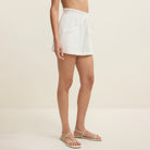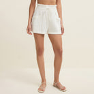 A 100% cotton fabric brings soft texture to this airy short. Detailed with a high-rise fit, elastic waistband, and patch pockets, it's the perfect blend of effortless and cool. Pair it with our matching top or any simple tank.