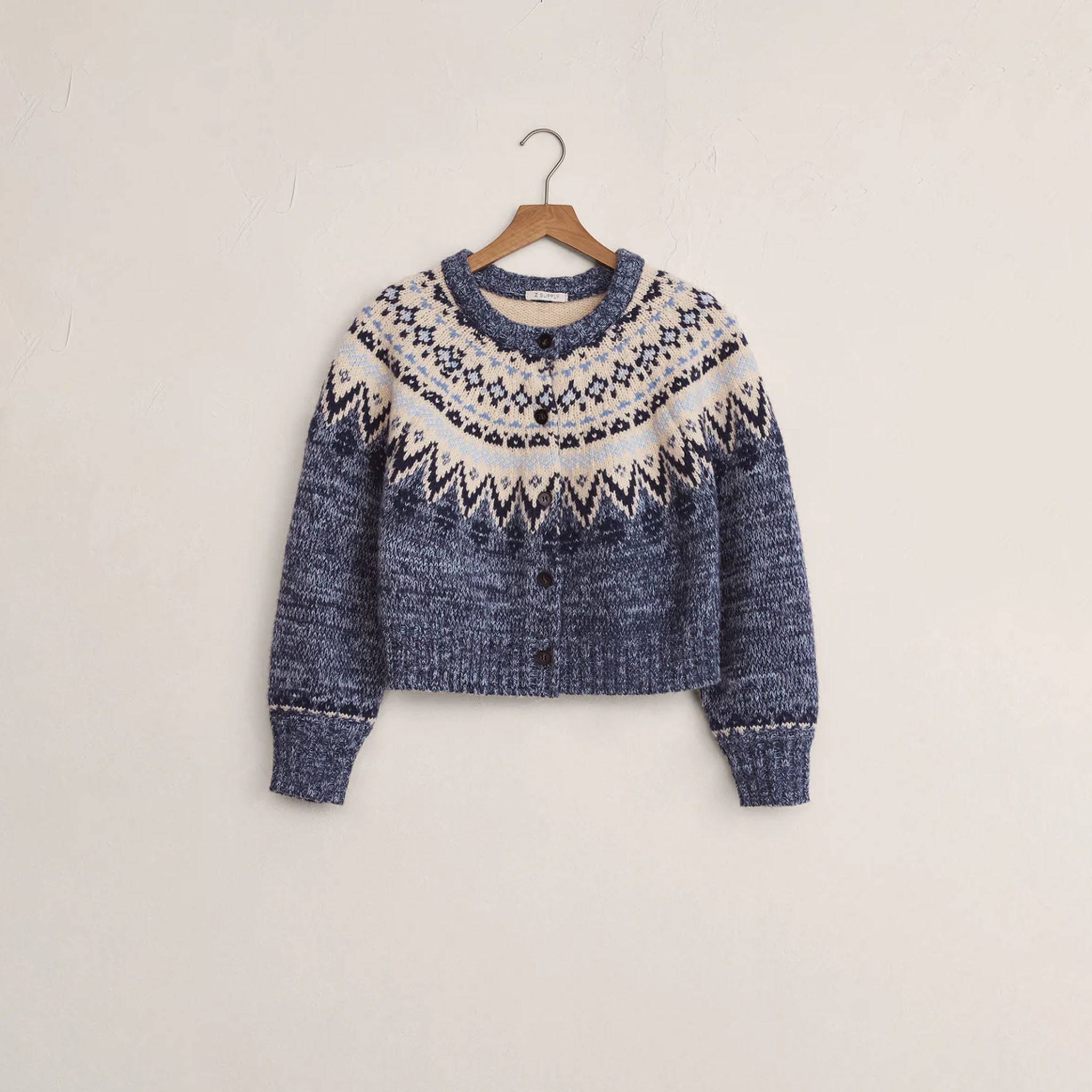 Z Supply North Sea Fairisle Cardigan Blue Velvet Heather