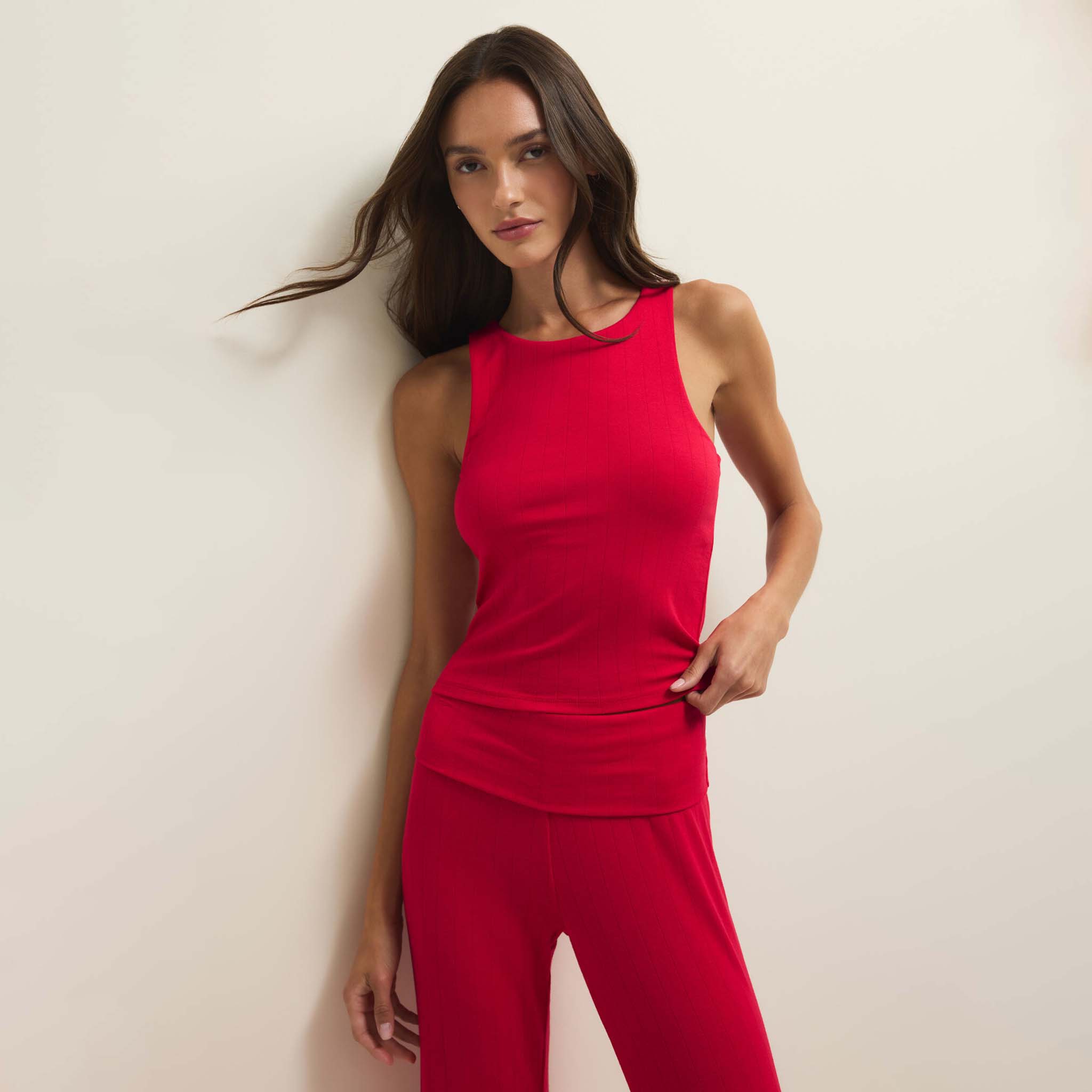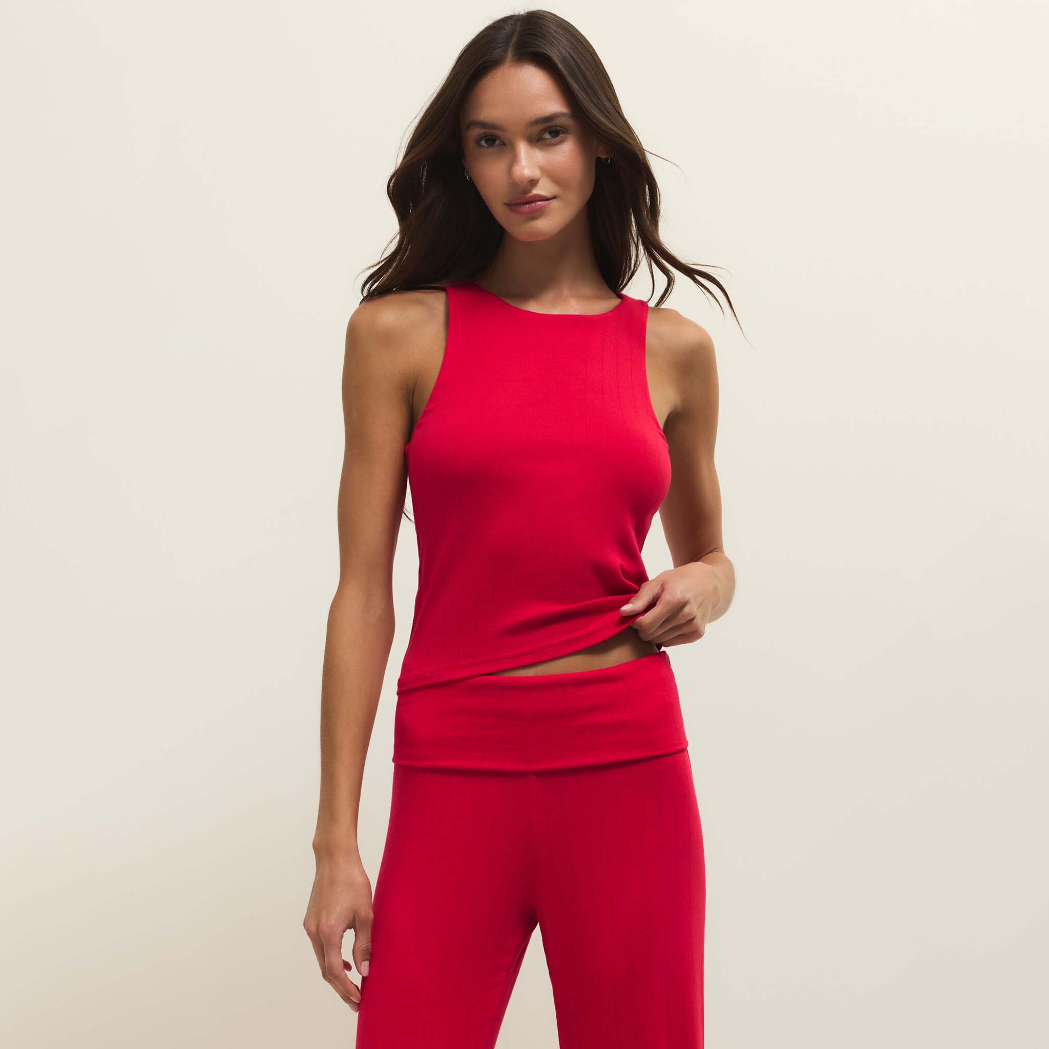 Crafted from our Modal Rib fabric, this fitted tank feels smooth, stretchy, and breathable against the skin. With wide straps and a classic crew neckline, it’s perfect for lounging at home or layering under your favorite cardigan.