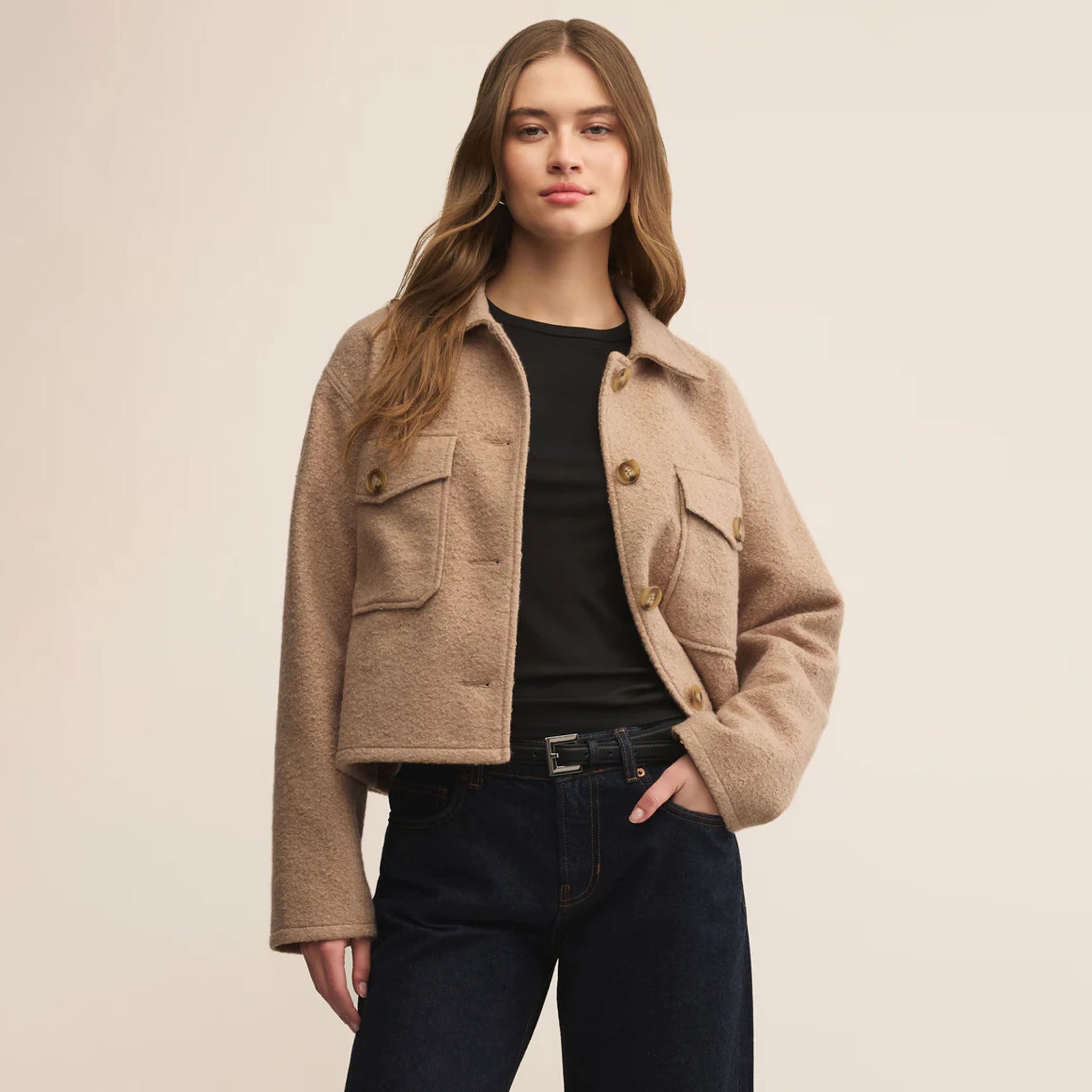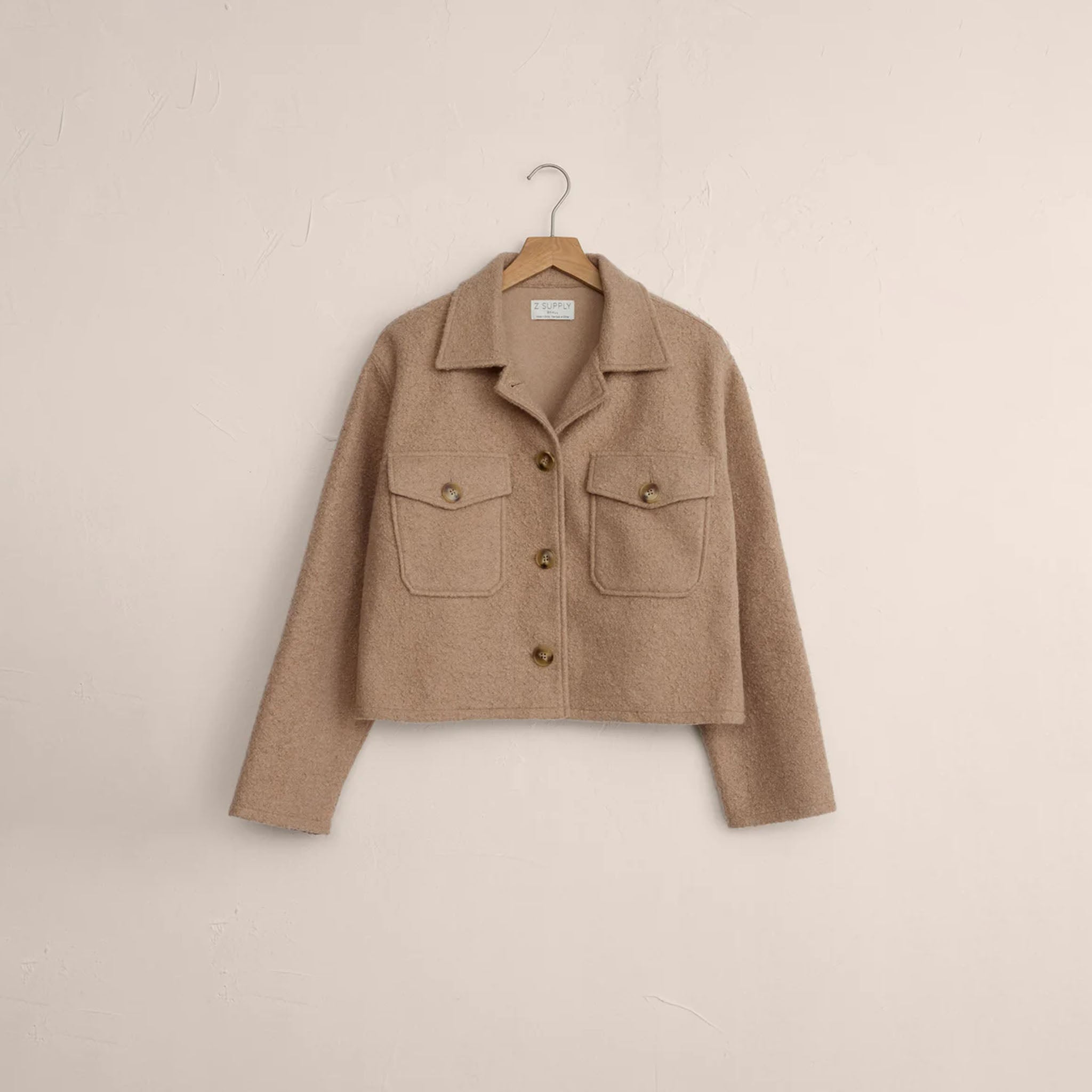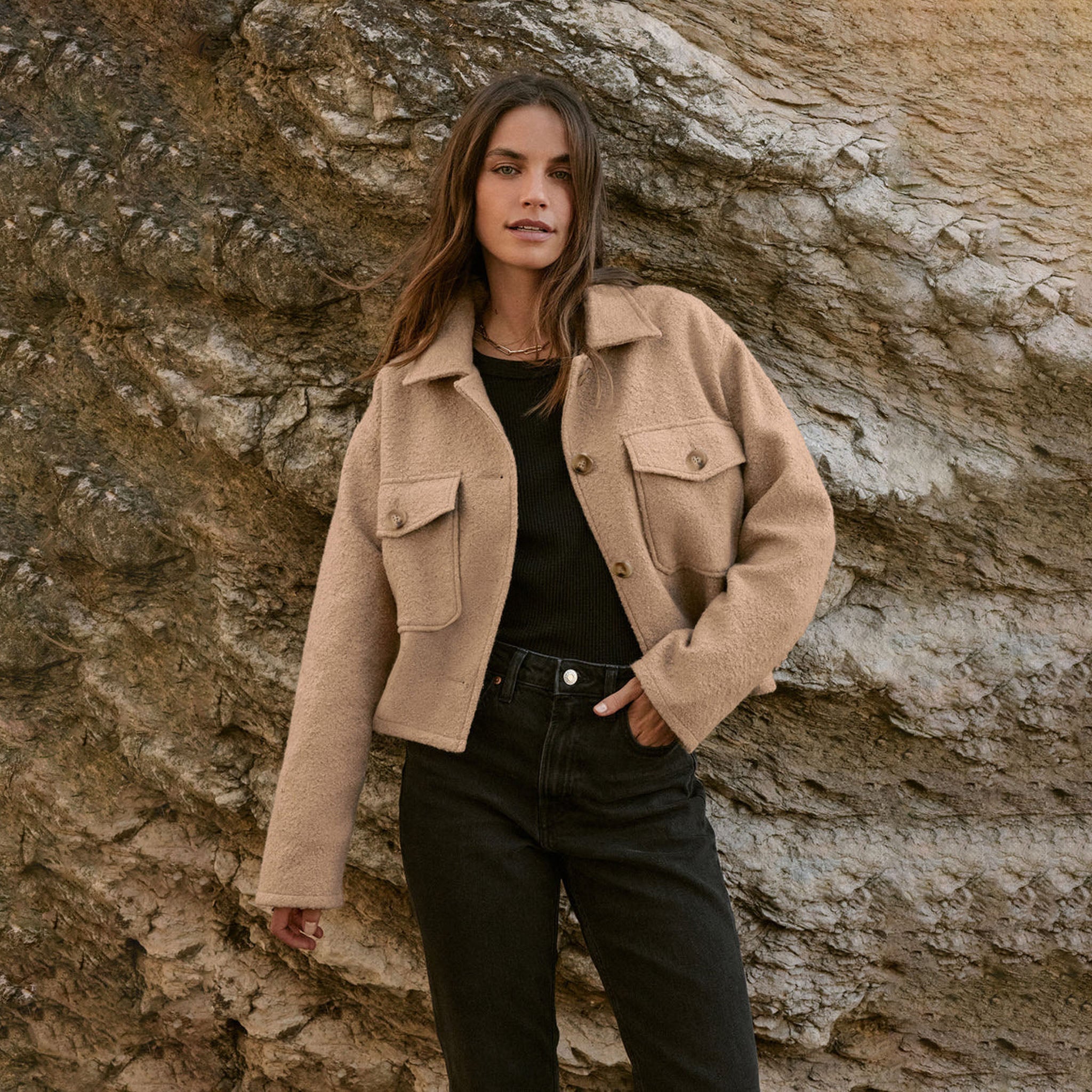 Textured and timeless, this cropped jacket is an instant style lift. With utility-style pockets and an easy button front, it’s equally at home over denim or styled with something sleeker.