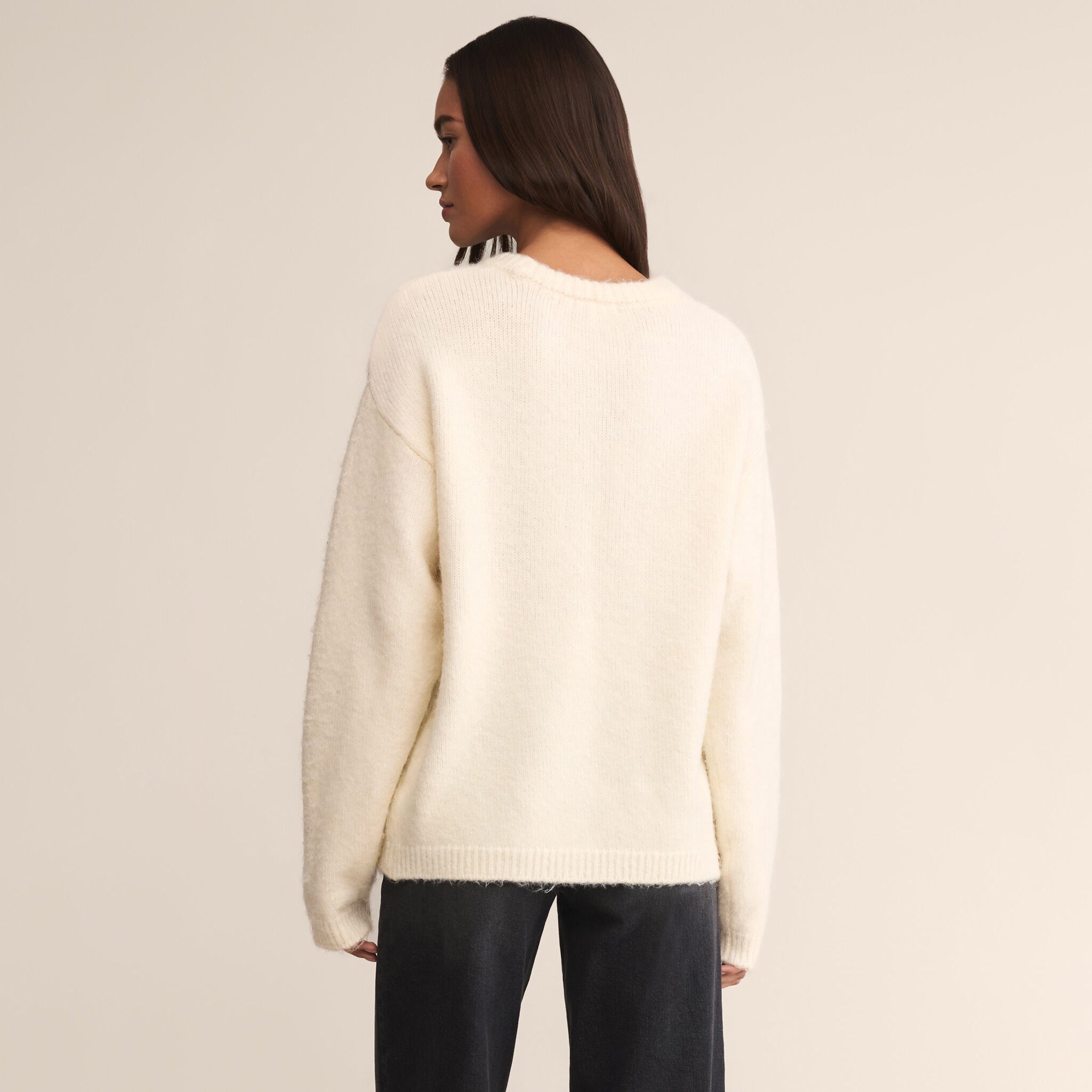 Soft mohair-blend yarns give this oversized crewneck its cozy, lived-in feel with just the right amount of texture. It’s the versatile knit that layers seamlessly from casual days to styled-up nights.