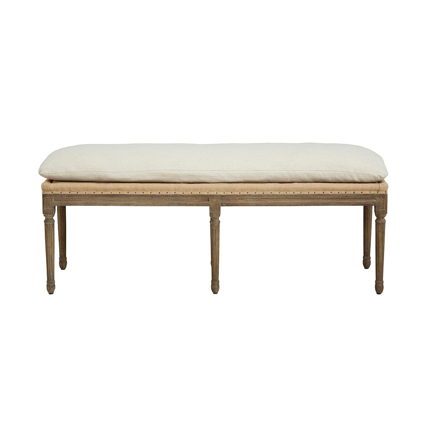 A lightly padded loose cushion sits atop classically crafted legs on our Maxine bench. A classic design that provide endless options for adding extra seating at a dining table an easy entryway addition, or the perfect spot for pillows and blankets at end of the bed.