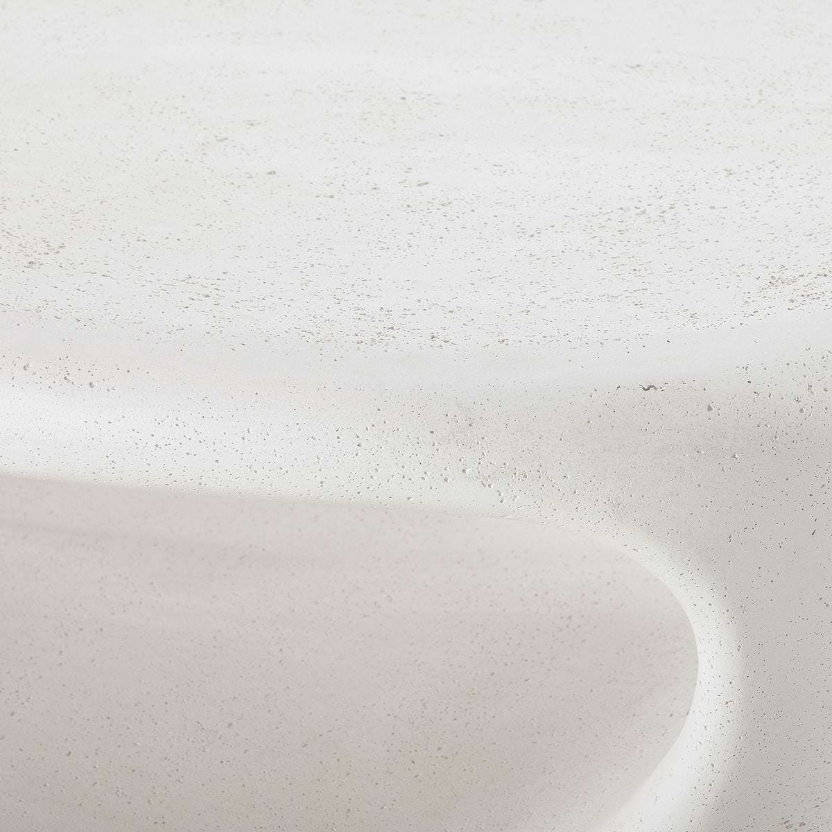 A low-profile coffee table made from glass-reinforced concrete with a smooth warm white finish. Designed for use indoors or out, it features a hollow center that adds visual lightness while also providing practical storage. Solid, substantial, and easy to place in both living spaces and outdoor settings.