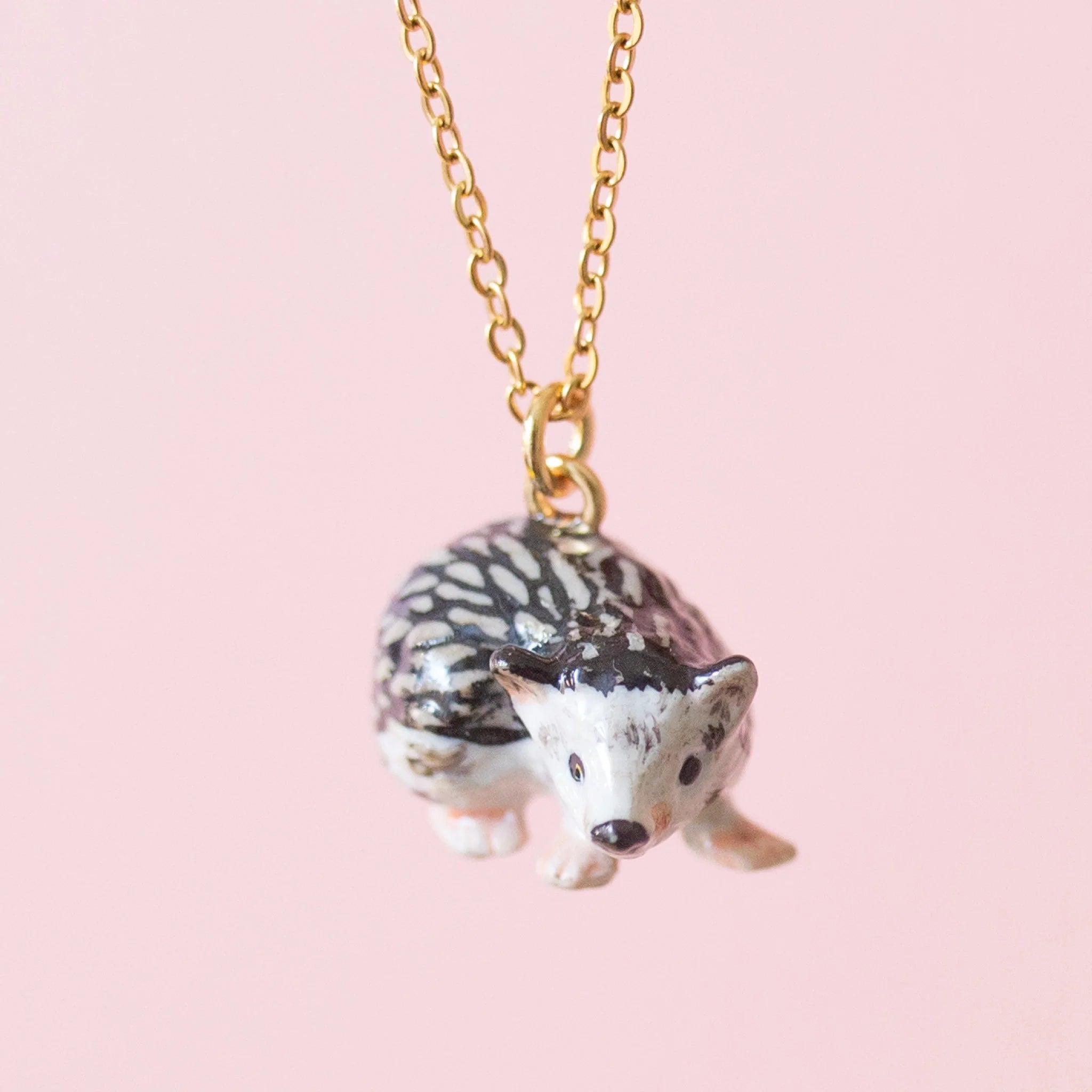 Meet your new prickly companion! This adorable porcelain hedgehog necklace brings a touch of whimsy to your everyday style. Each miniature charm is meticulously hand-painted with charming details, capturing the personality of these beloved woodland creatures.