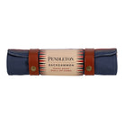 Travel-ready backgammon set from the iconic Pendleton brand. Featuring a canvas board and snap-on vegan leather pouch for storing pieces. Combining convenience with style, this game rolls up just like a Pendleton blanket for easy storage and travel. The Pendleton brand has a 150-year heritage, and their products are loved for their time-honored quality and craftsmanship.