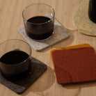Details: 4" x 4" in 5mm merino wool felt. Includes 4 coasters. Available in classic square. Made in USA.