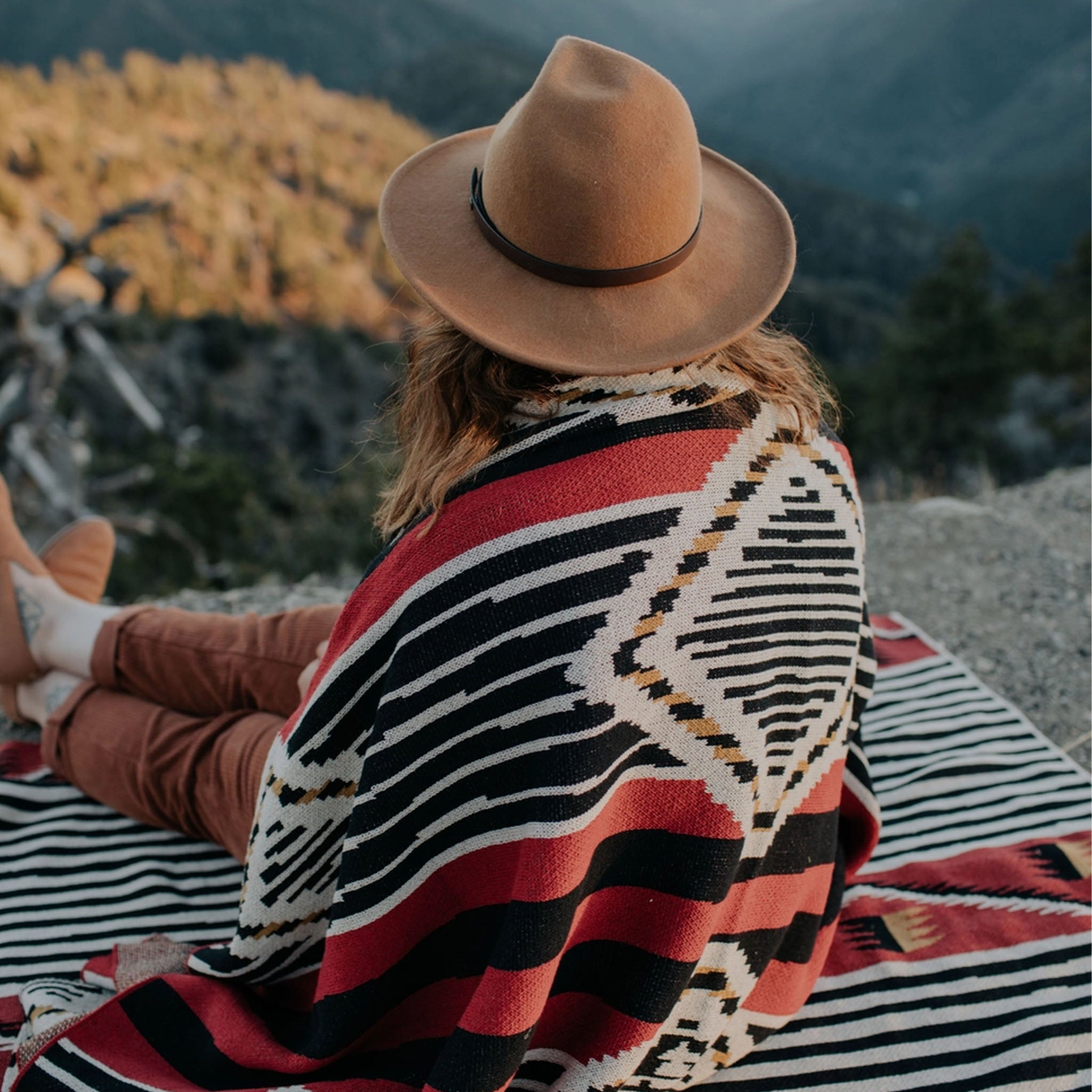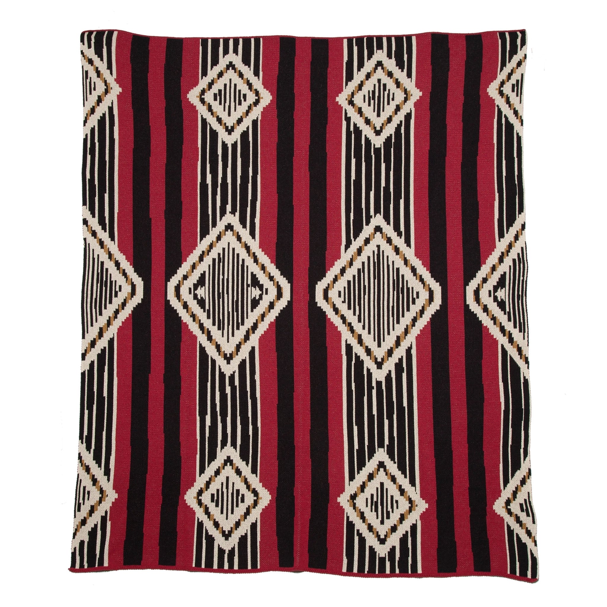 You can almost feel the warmth of the sun on red desert rocks when you wrap yourself in this Navajo-inspired blanket. Perfect for a cabin the southwest, or at home in a modern urban setting. Made in the USA.