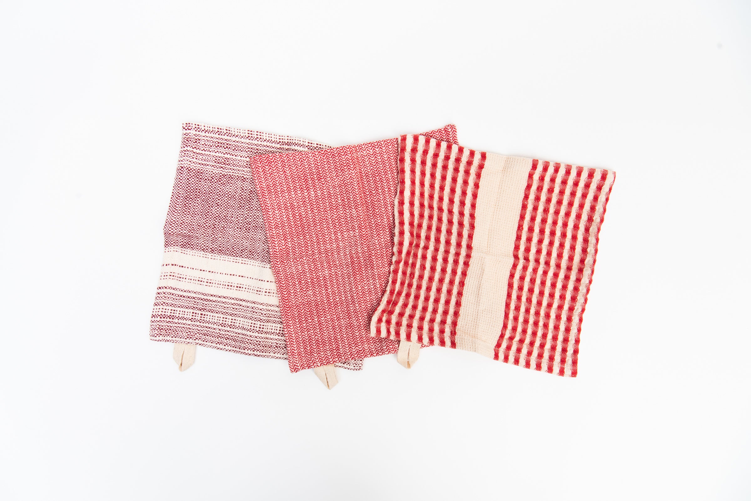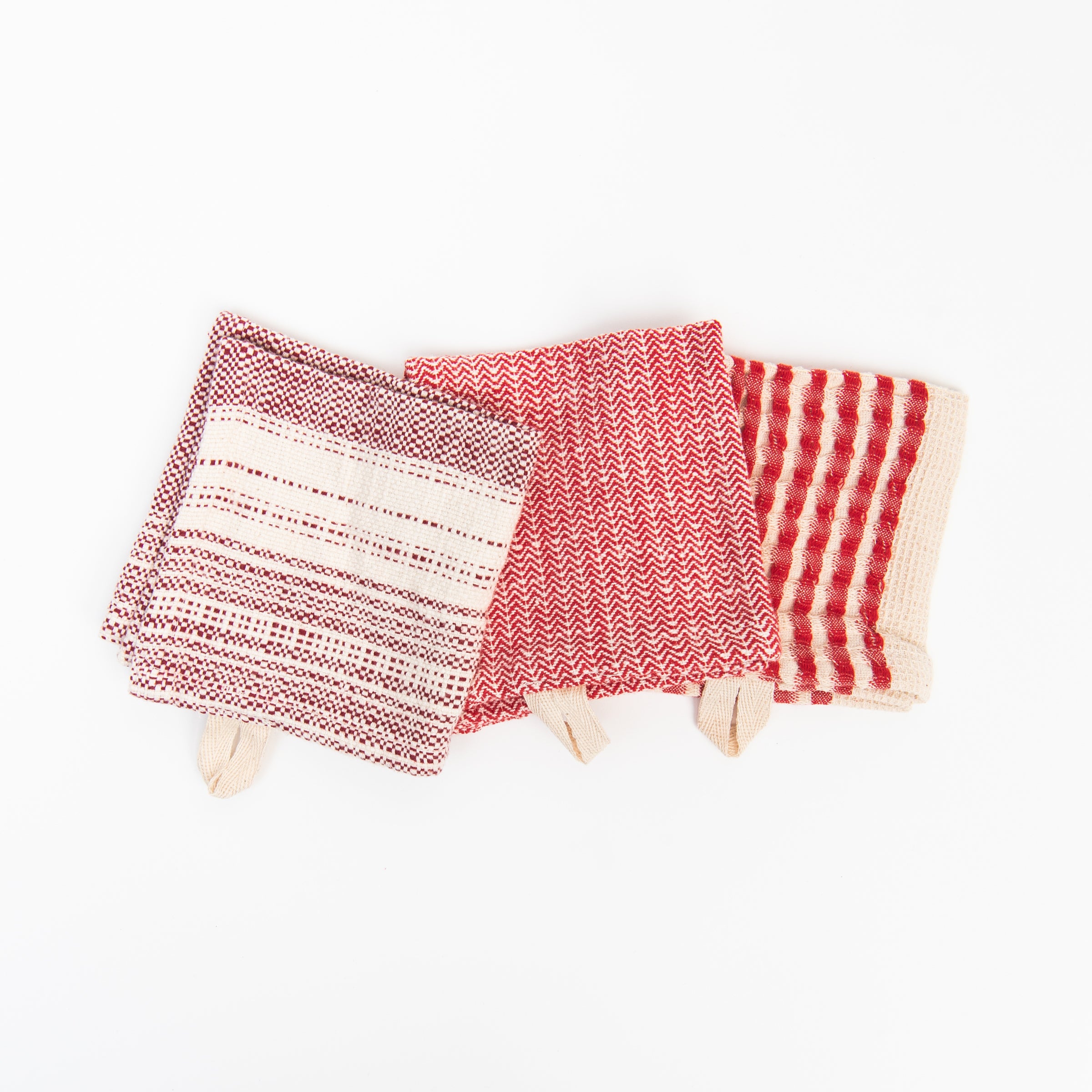 Bright stripes and a little holiday cheer. These woven dishcloths make even cleanup feel festive. Made from soft, absorbent cotton in red-and-cream hues, they’re perfect for wiping down counters, drying dishes, or adding a seasonal pop to your kitchen. Set of three.