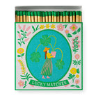 A quietly joyful design rooted in growth and good fortune. This Lucky Matches box by Archivist Gallery features a hand-illustrated figure tending to clover and blooms—an ode to patience, care, and the everyday rituals that bring a little luck along the way.