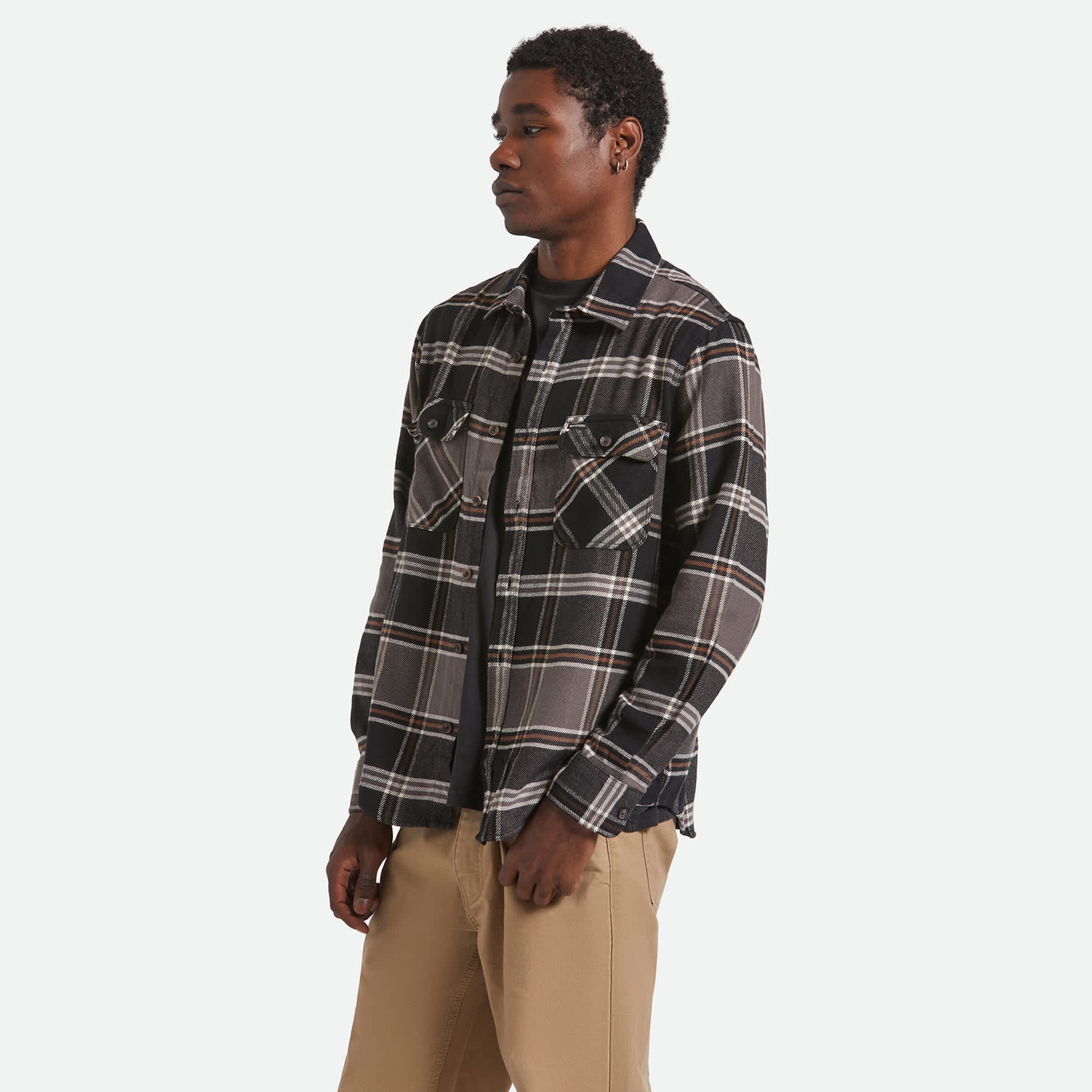 Brixton Men's Bowery Flannel in Black & Pinecone Brown