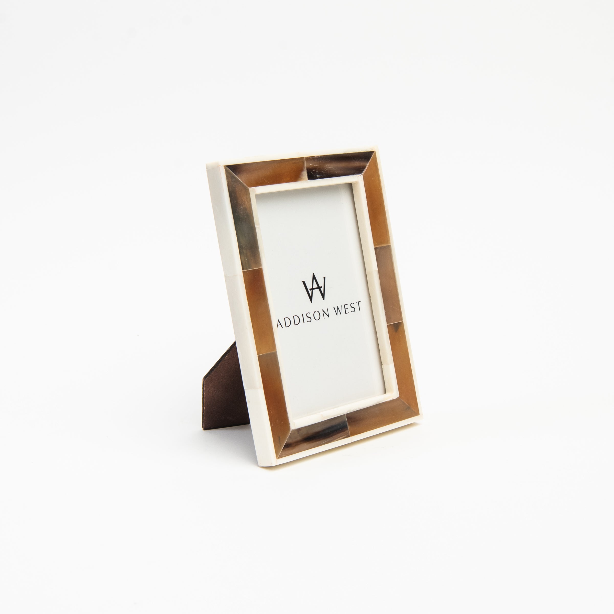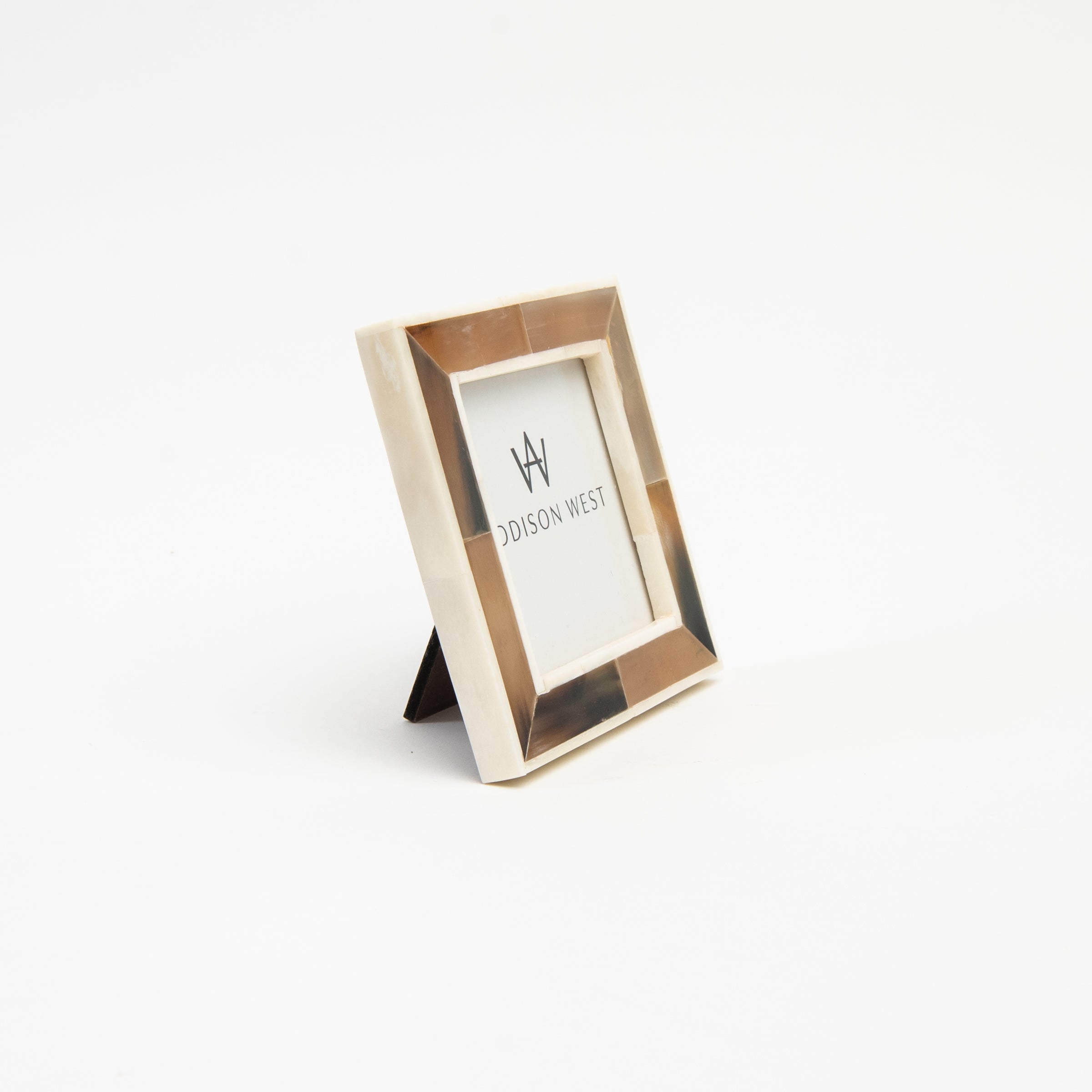 The Savoy frame pairs smooth horn and bone in warm, neutral tones, creating a subtle stripe that works with both color and black-and-white photos. A clean profile makes it easy to style on a shelf, console, or nightstand, and the natural materials mean no two frames are exactly alike.