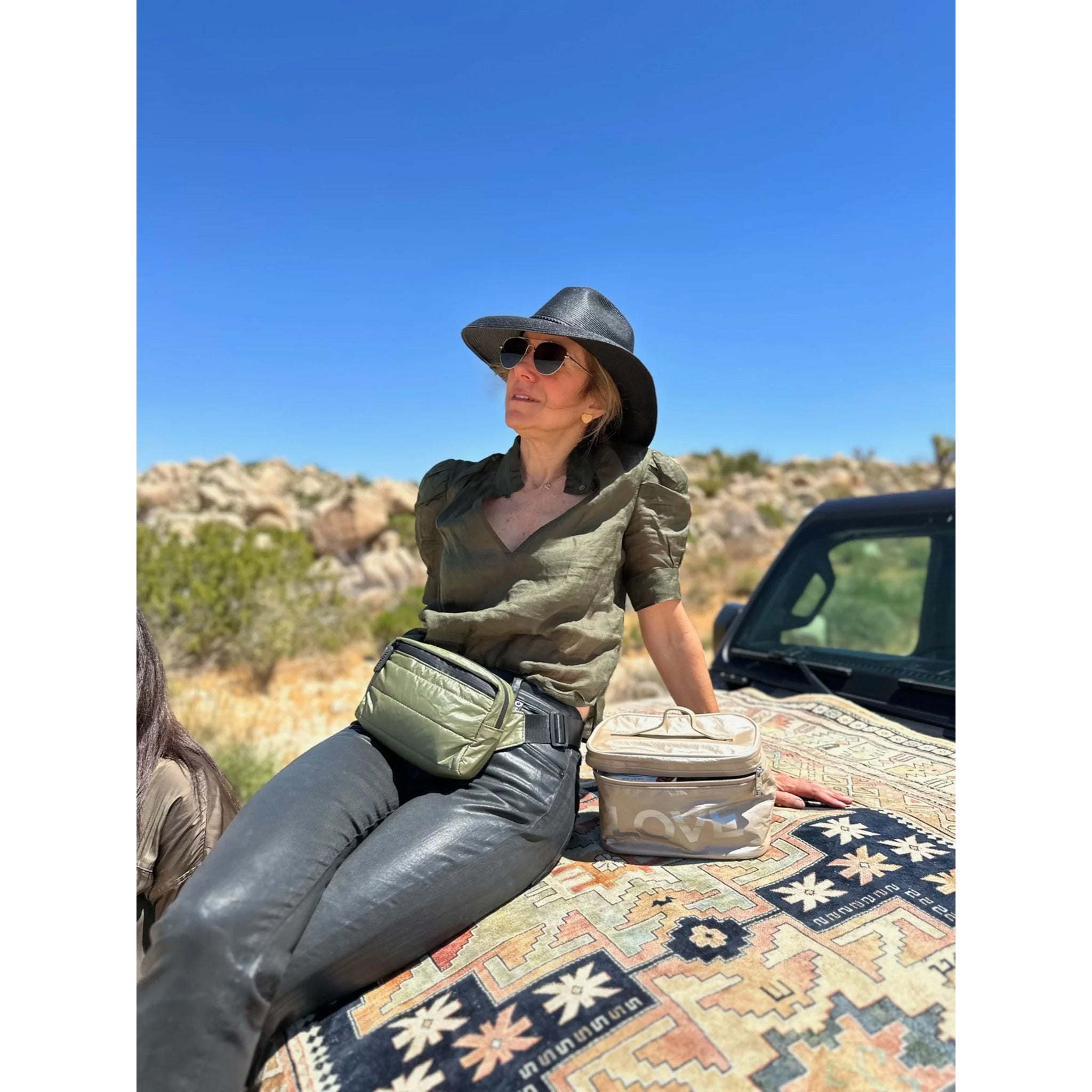 Hi Love Puffer Fanny Pack in Shimmer Army Green