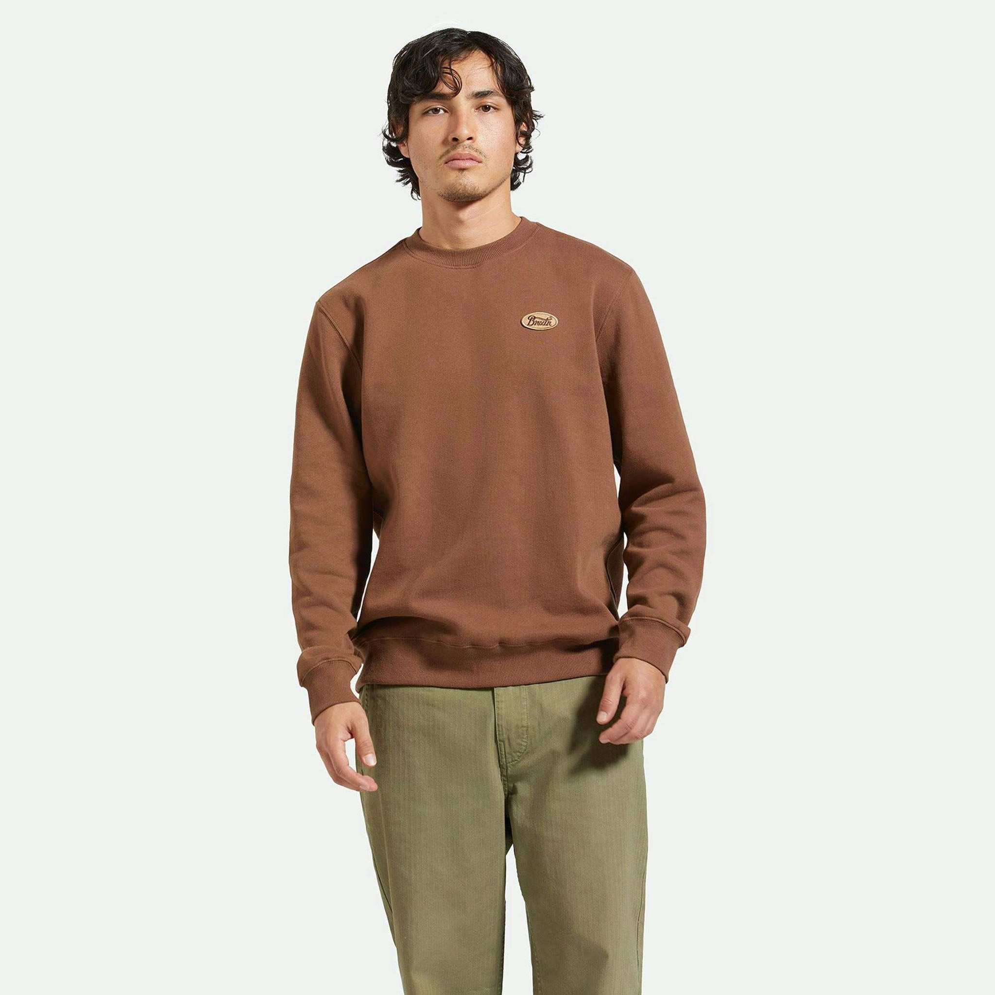 Brixton Men's Parson Patch Crew in Pinecone Brown