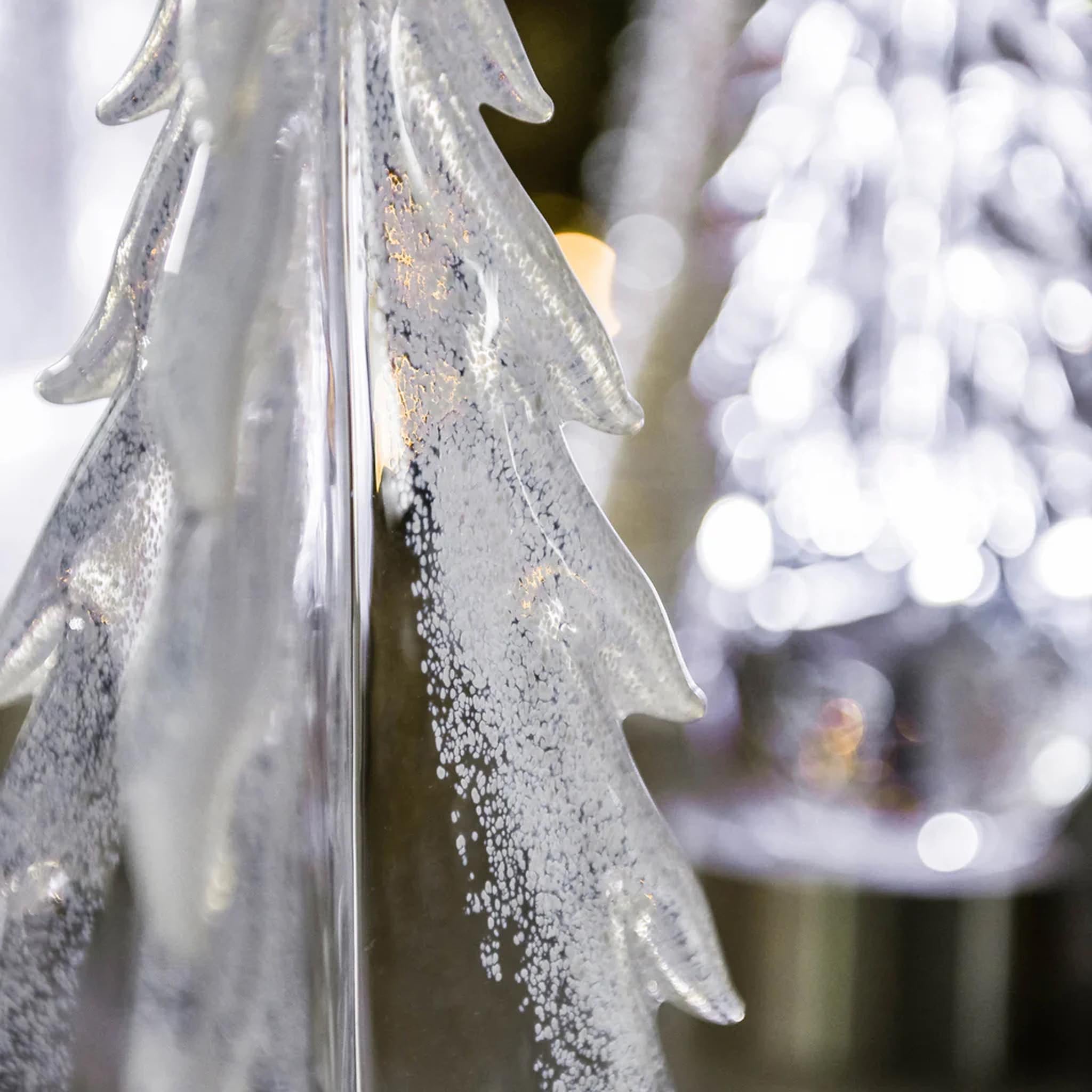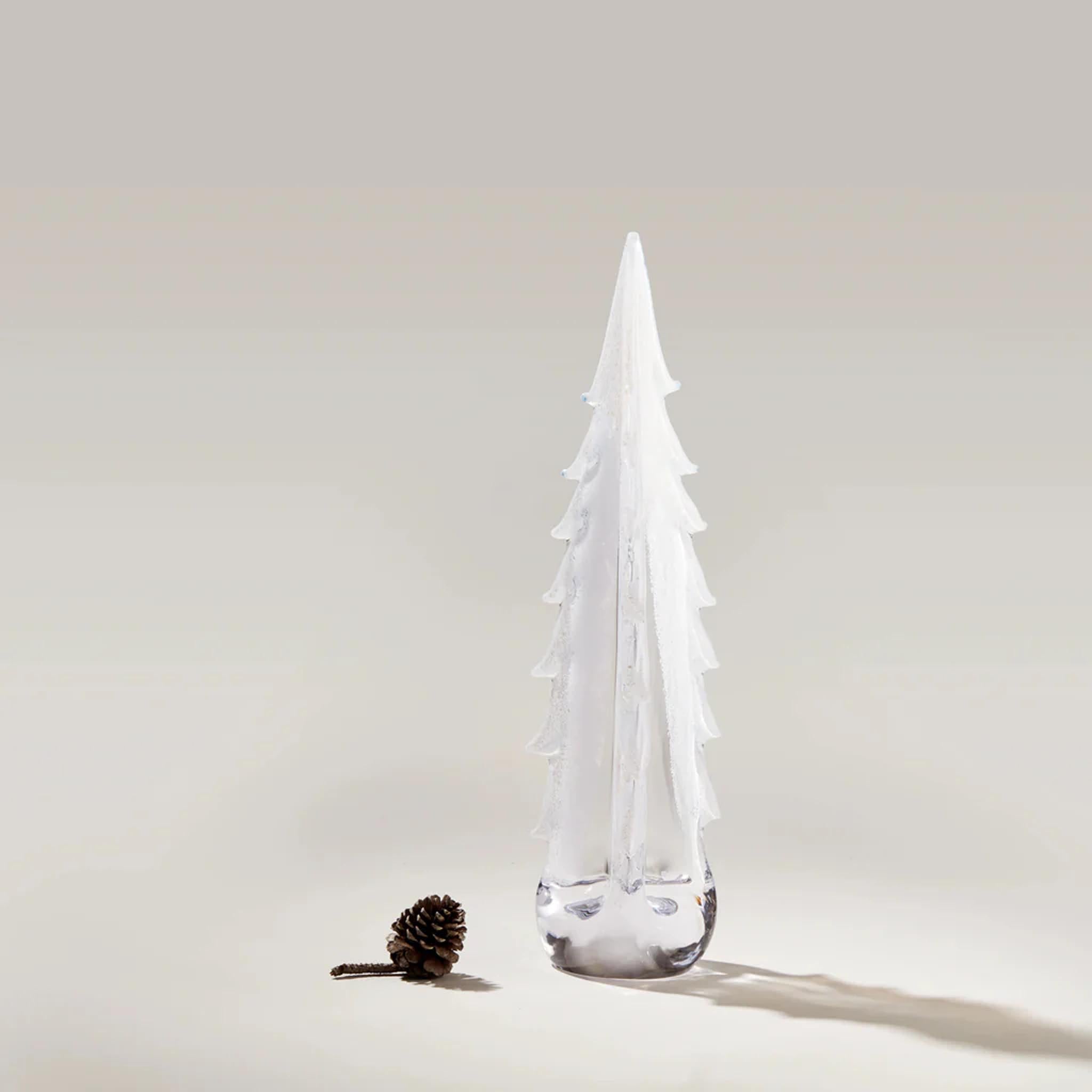 In homage to the romance of the Vermont winter woods, the Snowy Branch Evergreen Glass Tree features white sand melted along the edges to add a subtly sparkling effect. A textural little addition to your forest – or a thoughtful gift for anyone who dreams of freshly fallen snow. Handmade with Simon Pearce's signature glassblowing techniques. Sustainably produced lead-free glass. Made in USA.