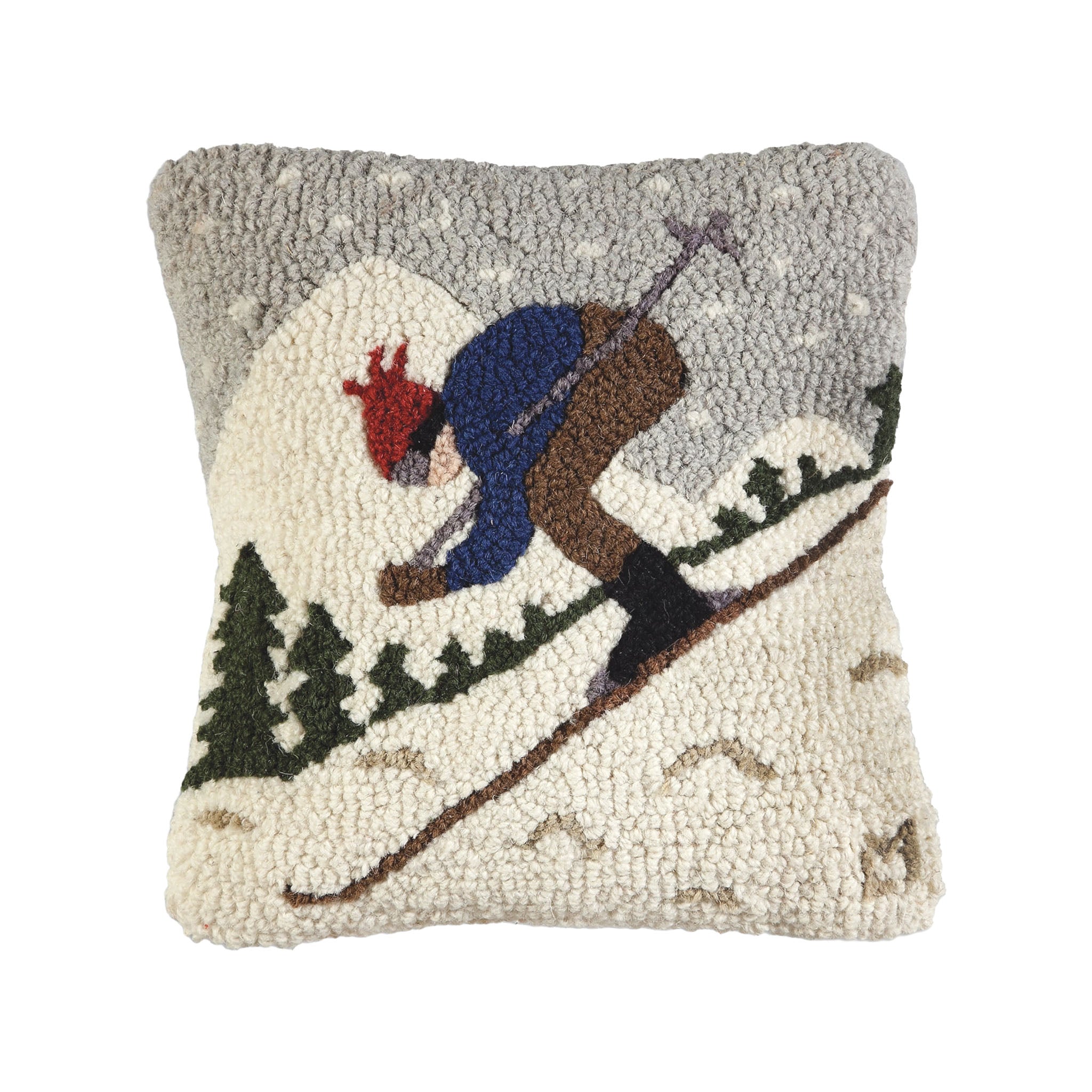 Tucked and ready this skier pillow is ready for slope-side enjoyment! A perfect winter accent for an après ski lounge or a big city apartment.
