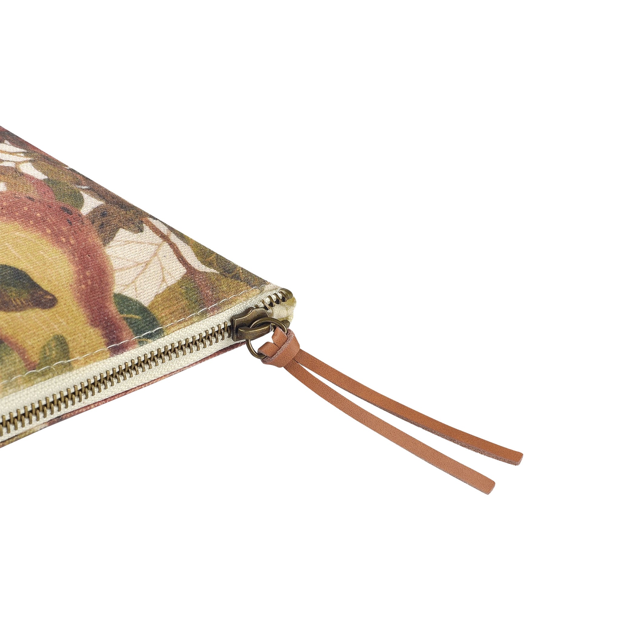 Beautifully crafted heavy duty canvas with bright floral print. Gusseted design and brass zipper for secure closure. Great for Pens/Pencils, Makeup, Charges and Wires.