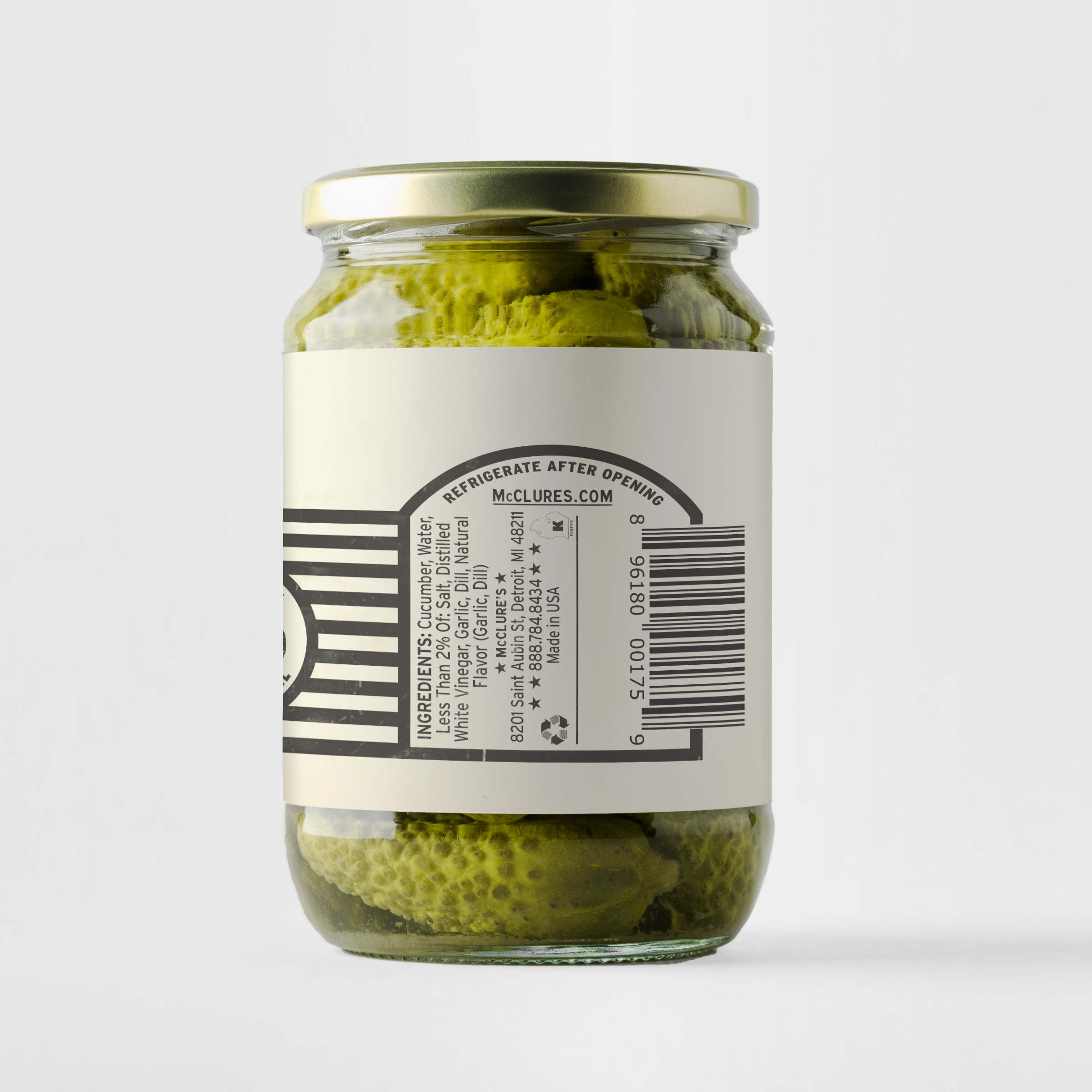 Cucumber, Water, Distilled White Vinegar, Less Than 2% Of: Salt, Garlic, Dill, Natural Flavor (Garlic & Dill). No added hormones, No antibiotics, No artificial sweeteners, and Non-GMO