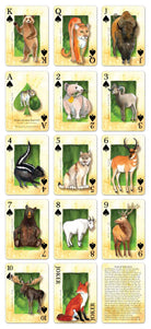 Animals depicted include moose, bears, mountain lions, elk, and smaller, furry favorites like the pika. The jokers feature the red fox, one of nature’s slyest tricksters.