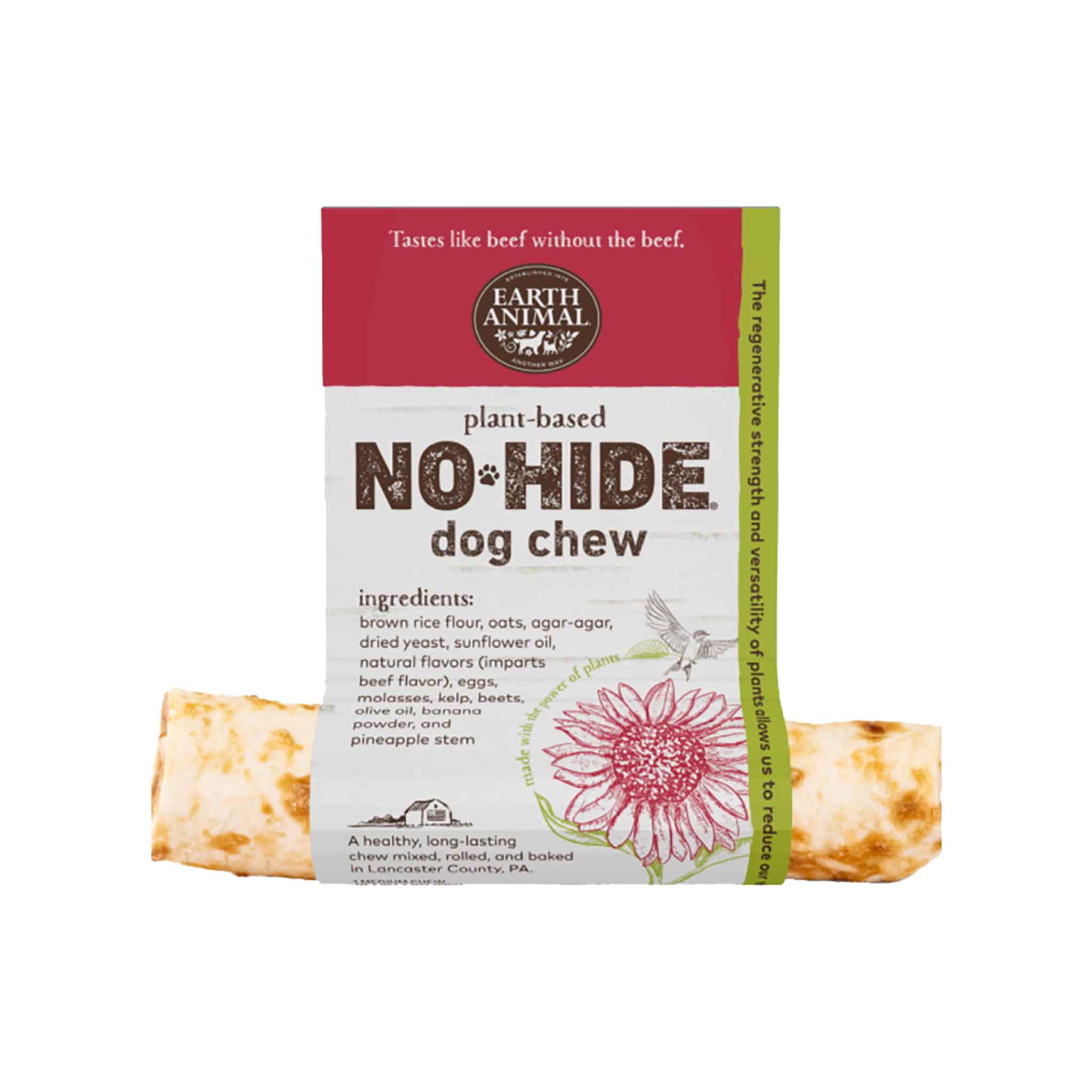 Earth Animal No Hide was formulated to provide dogs with a healthier, better alternative to Rawhide. No-Hide is the super-healthy, long-lasting, and mind-blowingly tasty chew. There’s no-thing like it on Earth. The meaty flavor glaze on these No-Meat No-Hide is made with the power of plants. Its deliciously aromatic fusion of flavor tastes like meat – without the meat! Earth Animal No-Hides are Proudly Made in Lancaster County, Pennsylvania. Easily Digestible. Durable, Long-Lasting Chew. Promotes Healthy Teeth and Gums. Plant Power, No Meat. No Chemicals or Additives.
