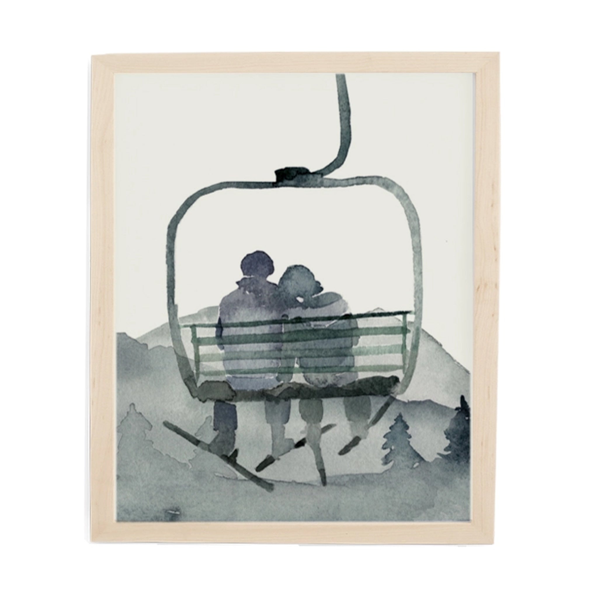 Inspired by love for the mountains. This timeless, hand-illustrated, art print depicts a couple on a ski lift. A lovely gift for a wedding, anniversary or anyone who loves the mountains.
