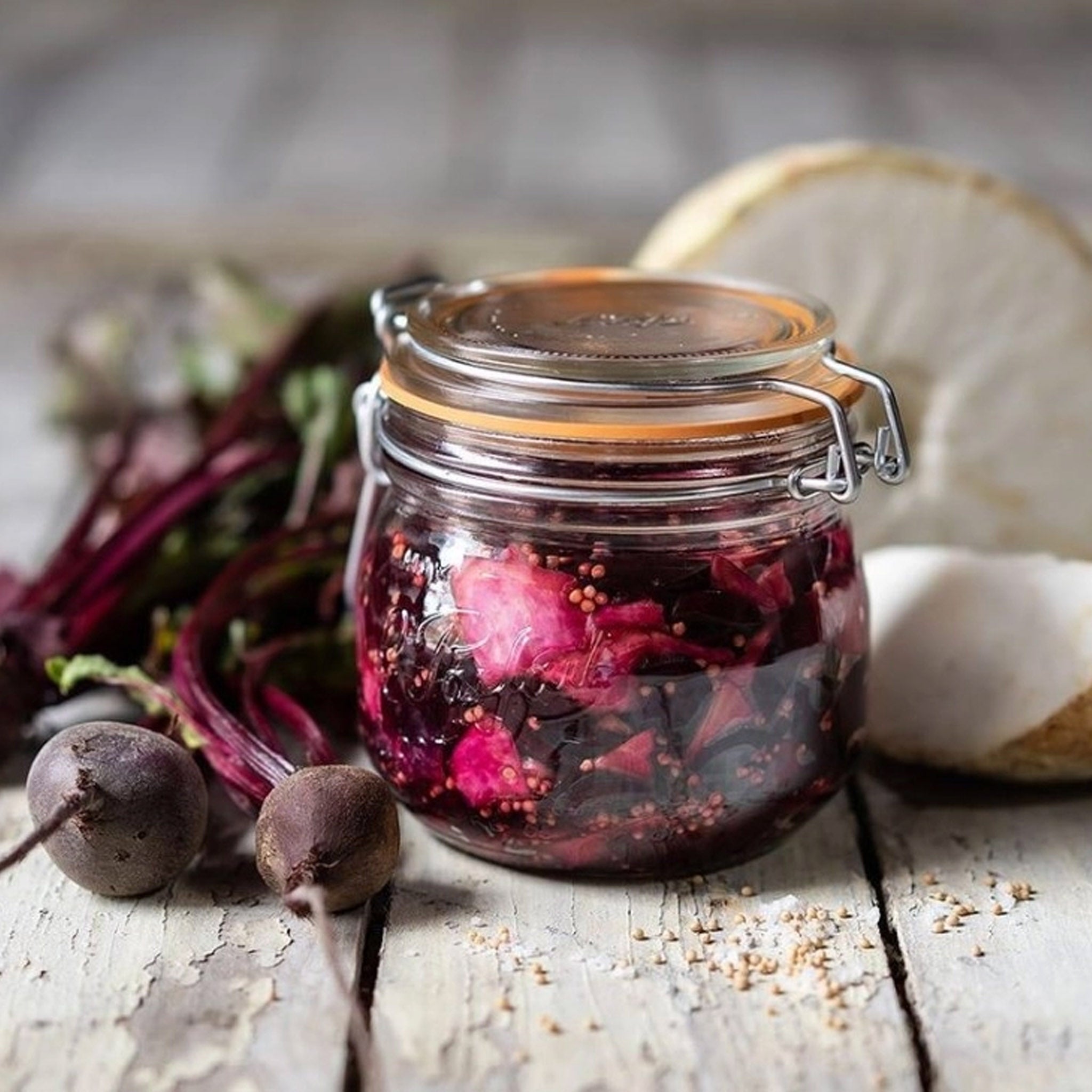Each jar is fitted with a natural rubber seal—free from synthetic additives—for an airtight closure that’s perfect for preserving freshness. Designed to withstand both the acidity of fermentation and the high heat of sterilization, these seals are a trusted choice for everything from canning to pickling. Le Parfait glass is made in France and adheres to the highest European standards for food safety. Products are tested annually to ensure they’re free of heavy metal contaminants like lead and cadmium, so you can preserve with confidence.