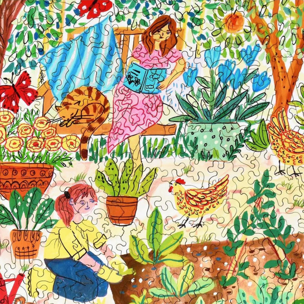 A garden in full bloom, chickens in the yard, and neighbors gathered for an afternoon of tea and conversation—this cheerful puzzle captures the essence of summer at home. Illustrated by Anna Ivanir, it’s a celebration of color, community, and everyday joys, from watering the plants to lounging under the shade of a tree.