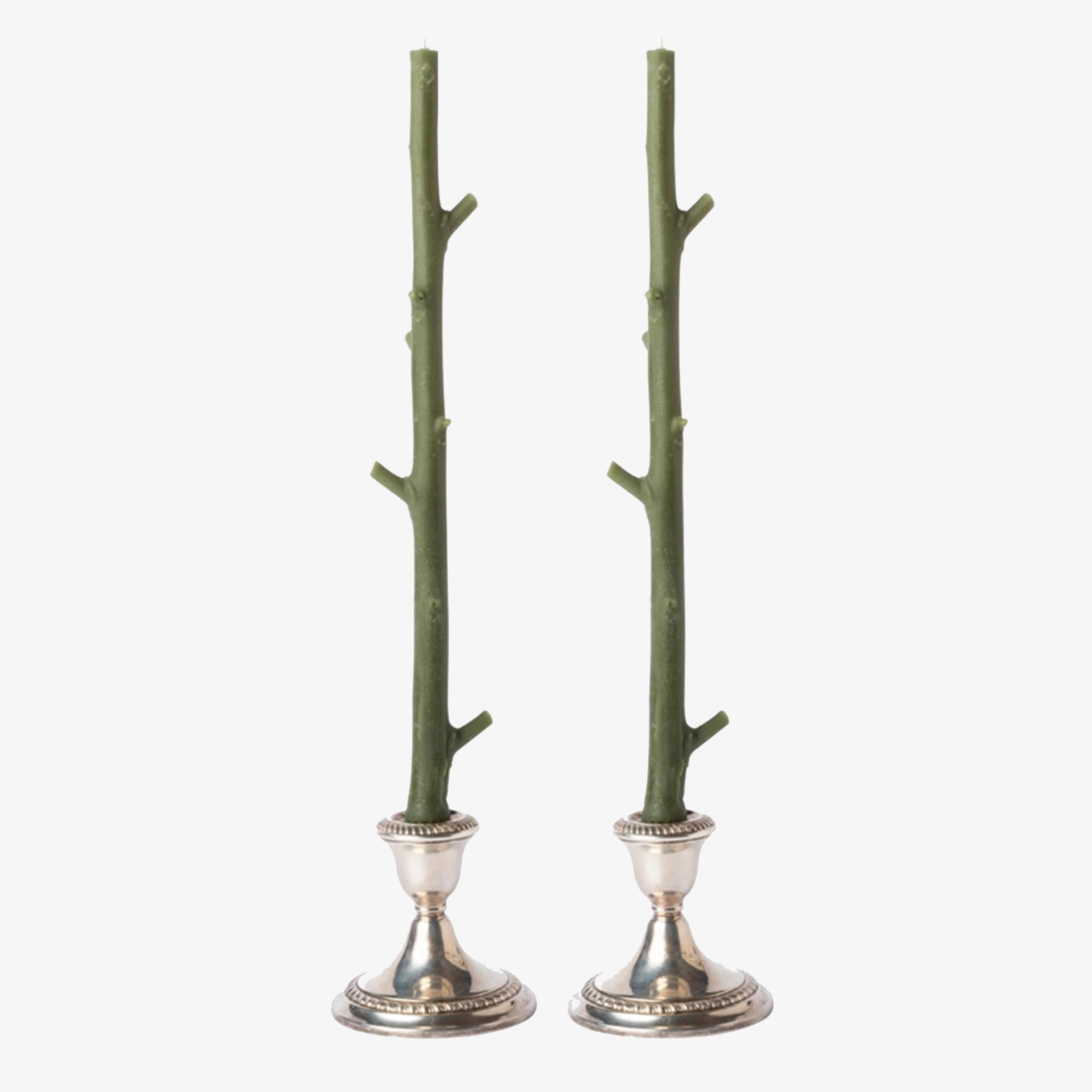 The stick candle. Made from a tree cutting then cast into candles. Rustic and warm in a seasonally diverse array of colors. Lovely in any candle holder. And one of our favorite hostess gifts. 14 hour burn time. Made by hand in North Carolina.