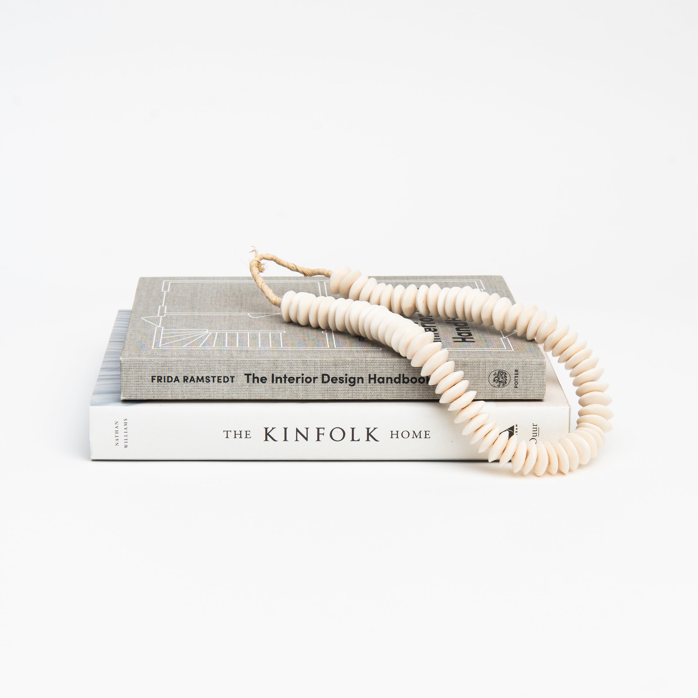 These white bone saucer beads are handcrafted in a fair trade workshop in central Kenya. Each bead is 100% unique and one-of-a-kind.