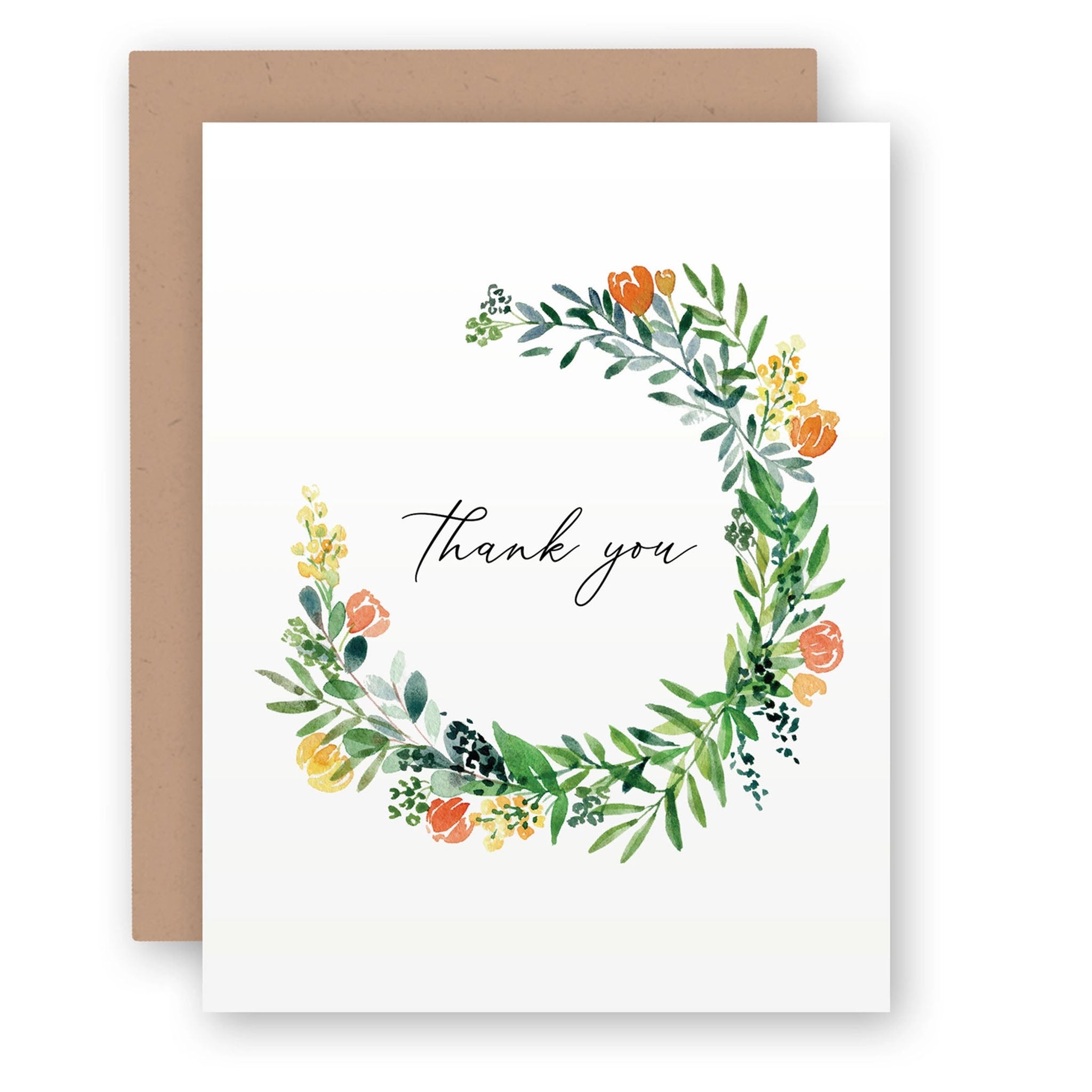 Simple and elegant "Thank You" cards are always great to have on hand! The hand-painted watercolor wreath paired with the modern script font is sure to make your recipients feel appreciated!