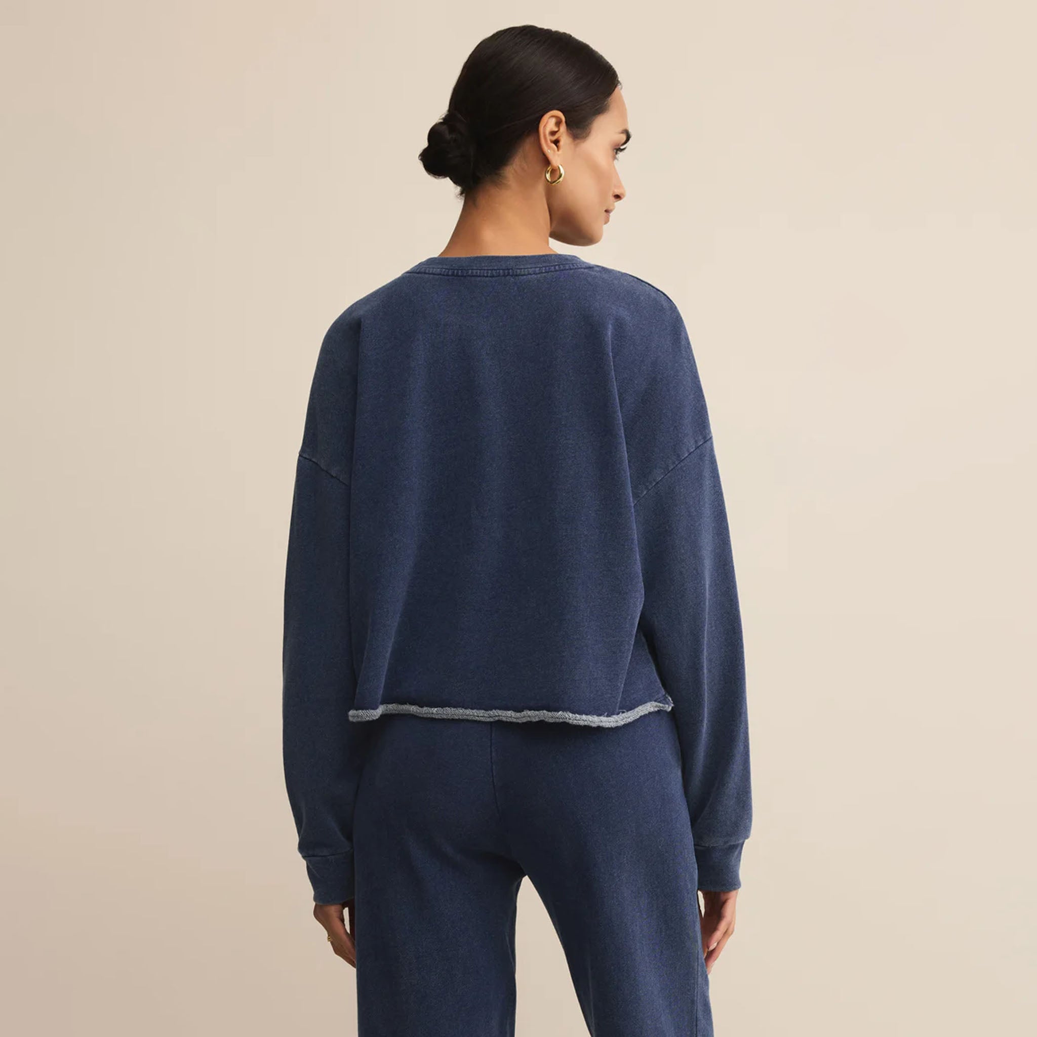 Z Supply Circuit Knit Denim Sweatshirt in Indigo