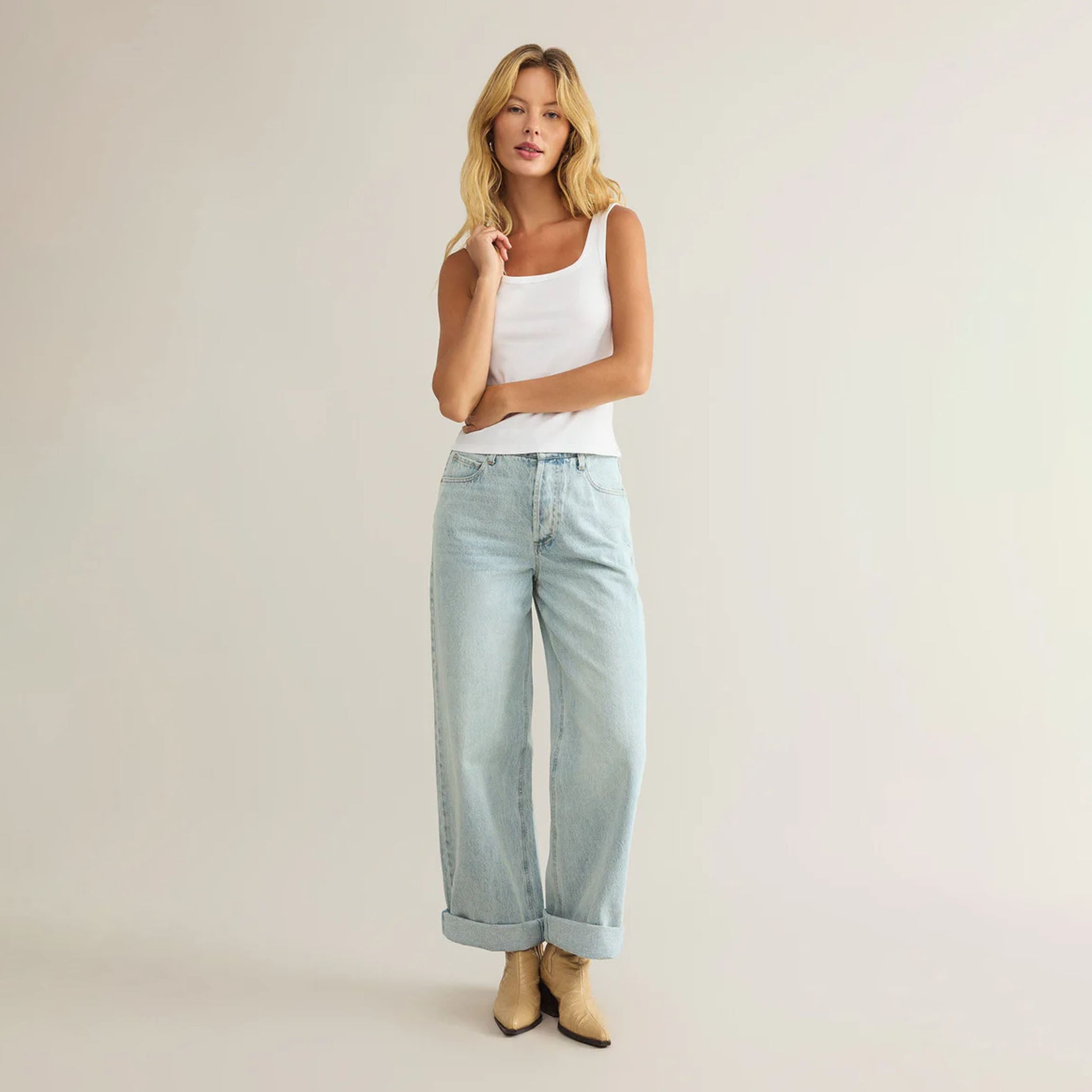 These high-rise jeans, made from the same rigid denim as our beloved shorts, offer a roomier fit through the hips and legs. With a longer inseam designed to be worn cuffed or uncuffed, they bring a relaxed, baggy vibe perfect for laid-back days.