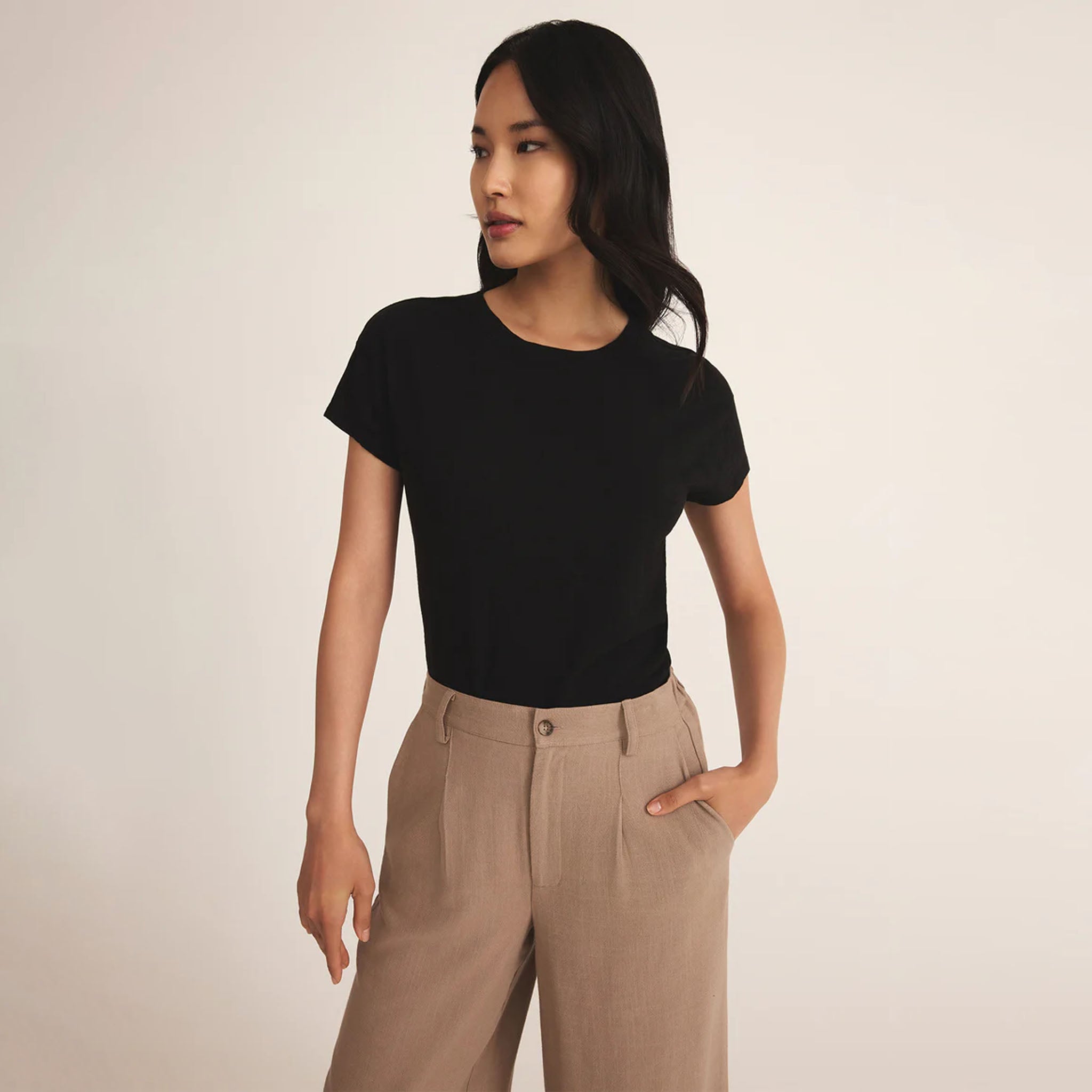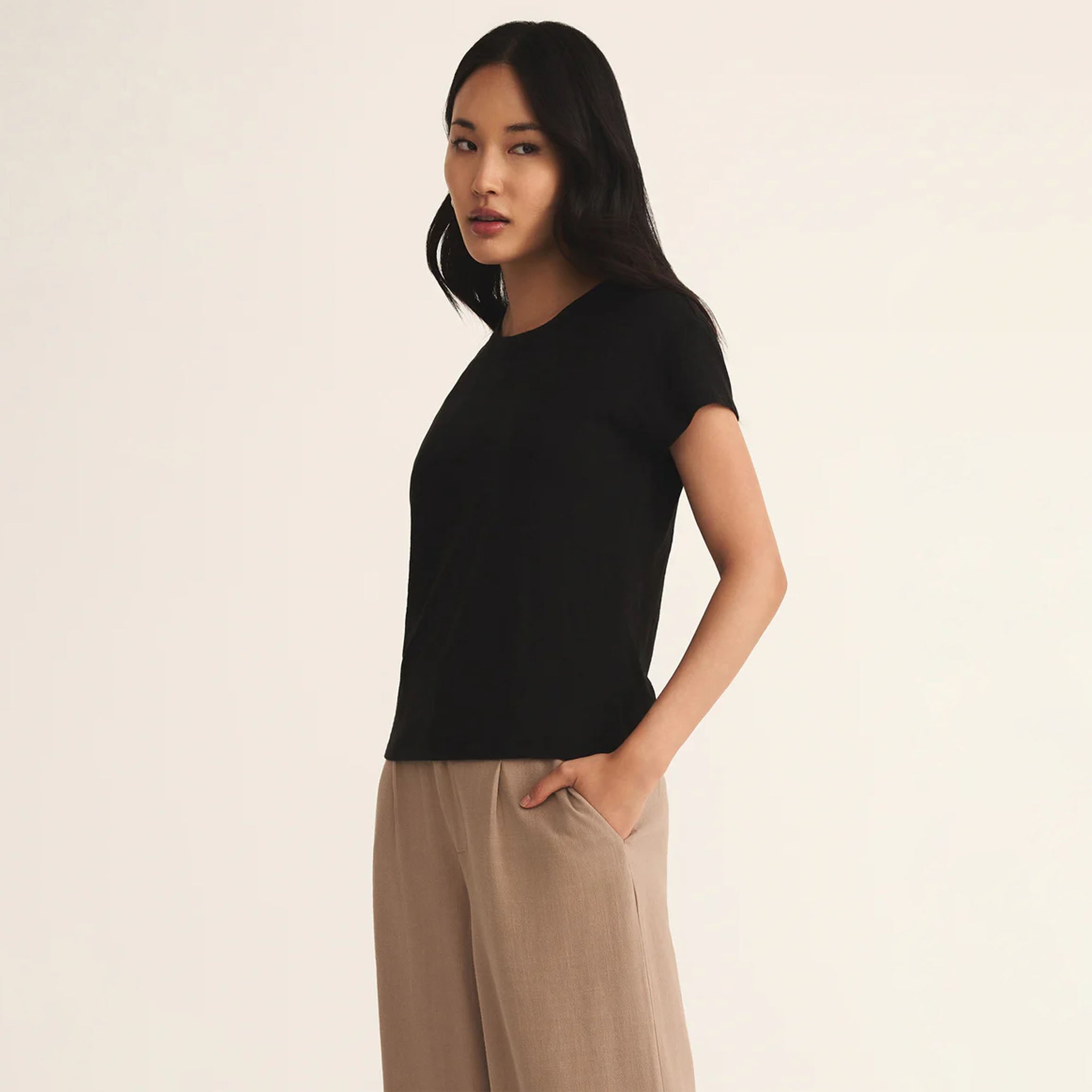 A casual wardrobe essential is made from vintage-feel cotton slub jersey. Features a relaxed, body skimming fit. A tried-and-true favorite with updates like a smaller neckband to reduce overall chunkiness and create a more refined appearance and fit. Yummy comfort all day long.
