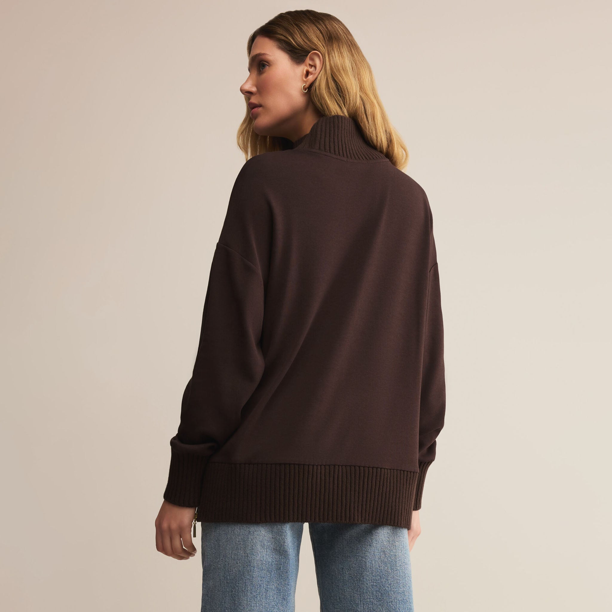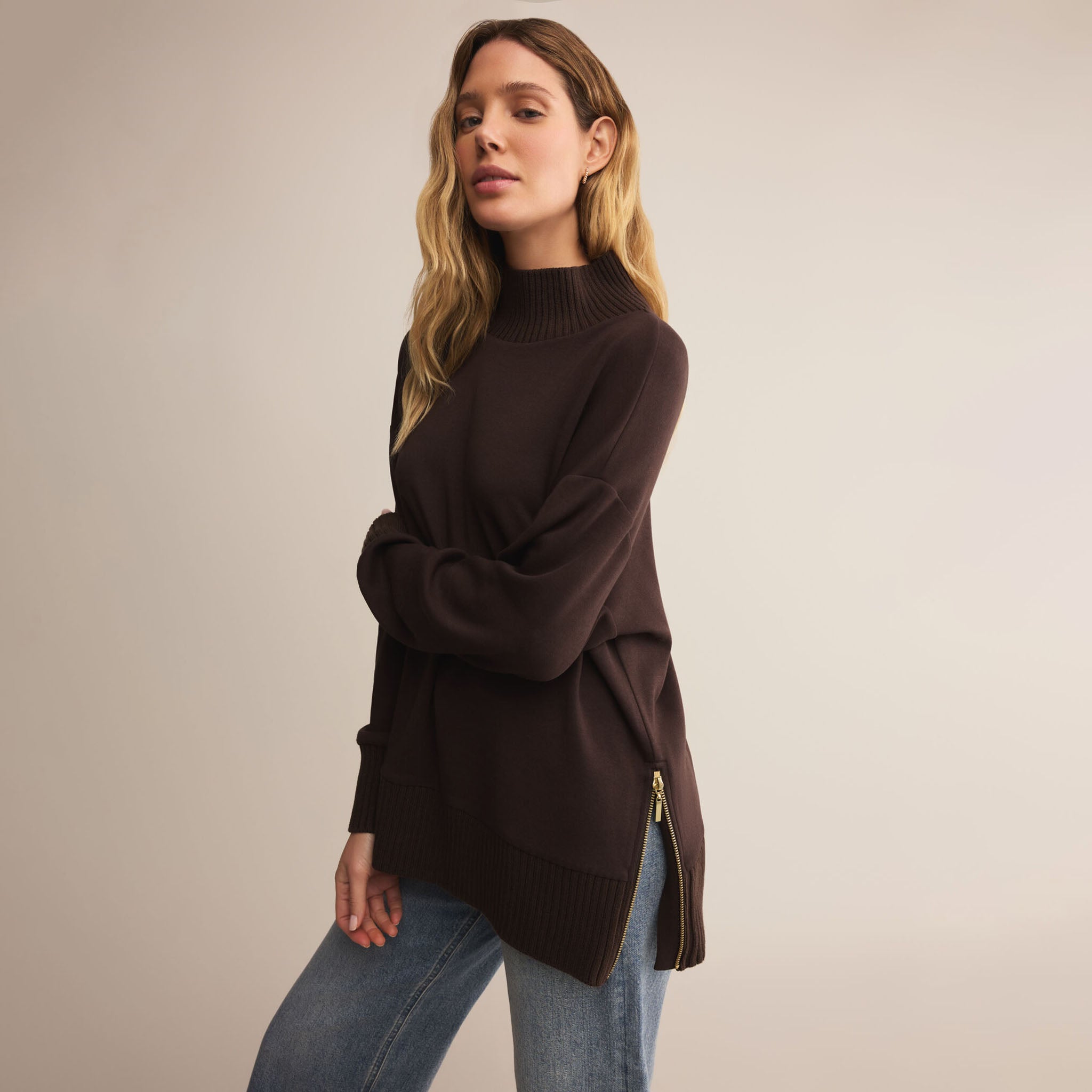 Designed in sleek midweight knit, this mock neck has a relaxed fit you’ll always reach for. Ribbed trim adds subtle texture, while side zips let you adjust the profile; loose and laid-back or tucked and styled.
