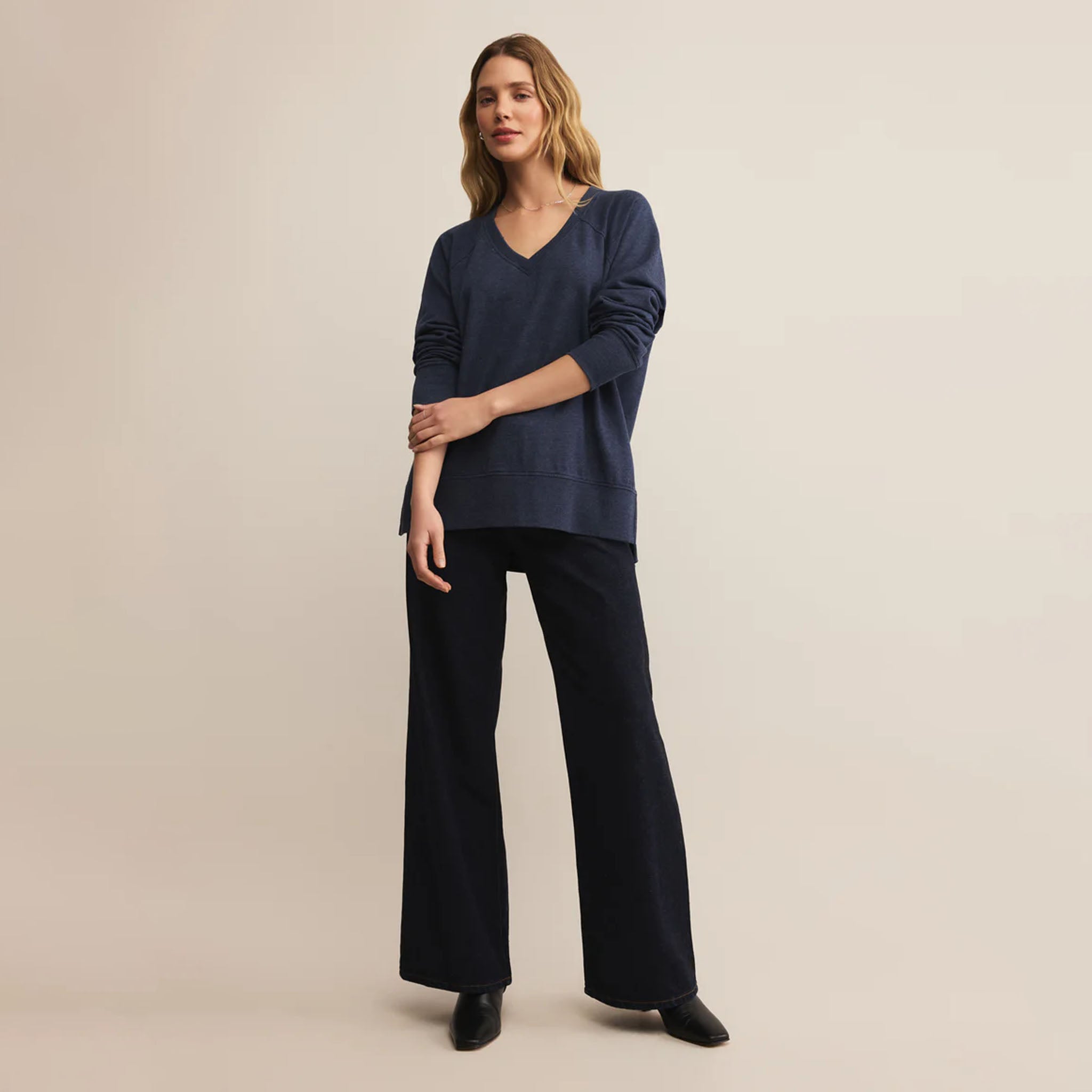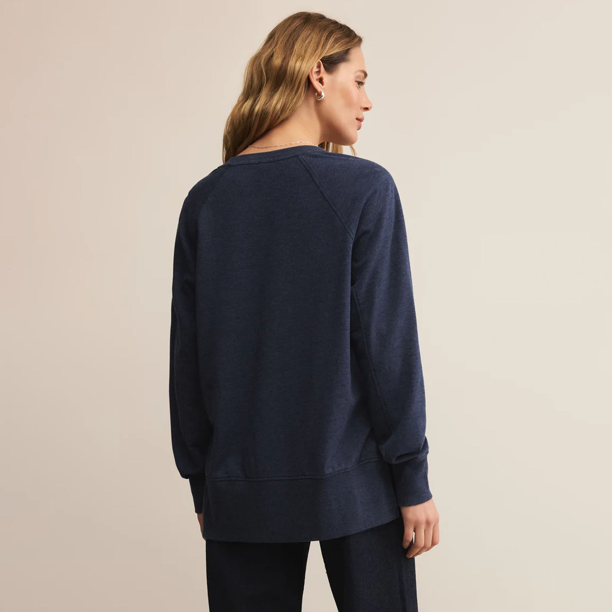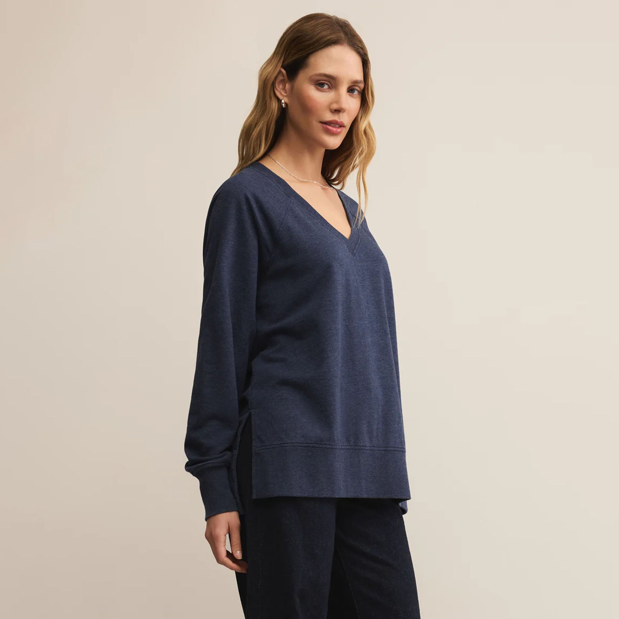 An oversized silhouette is crafted from midweight french terry fabric, featuring signature burnout treatment that gives a soft, lived-in feel that only improves with time. The side vent details and step hem add flattering details to elevate the casual look.