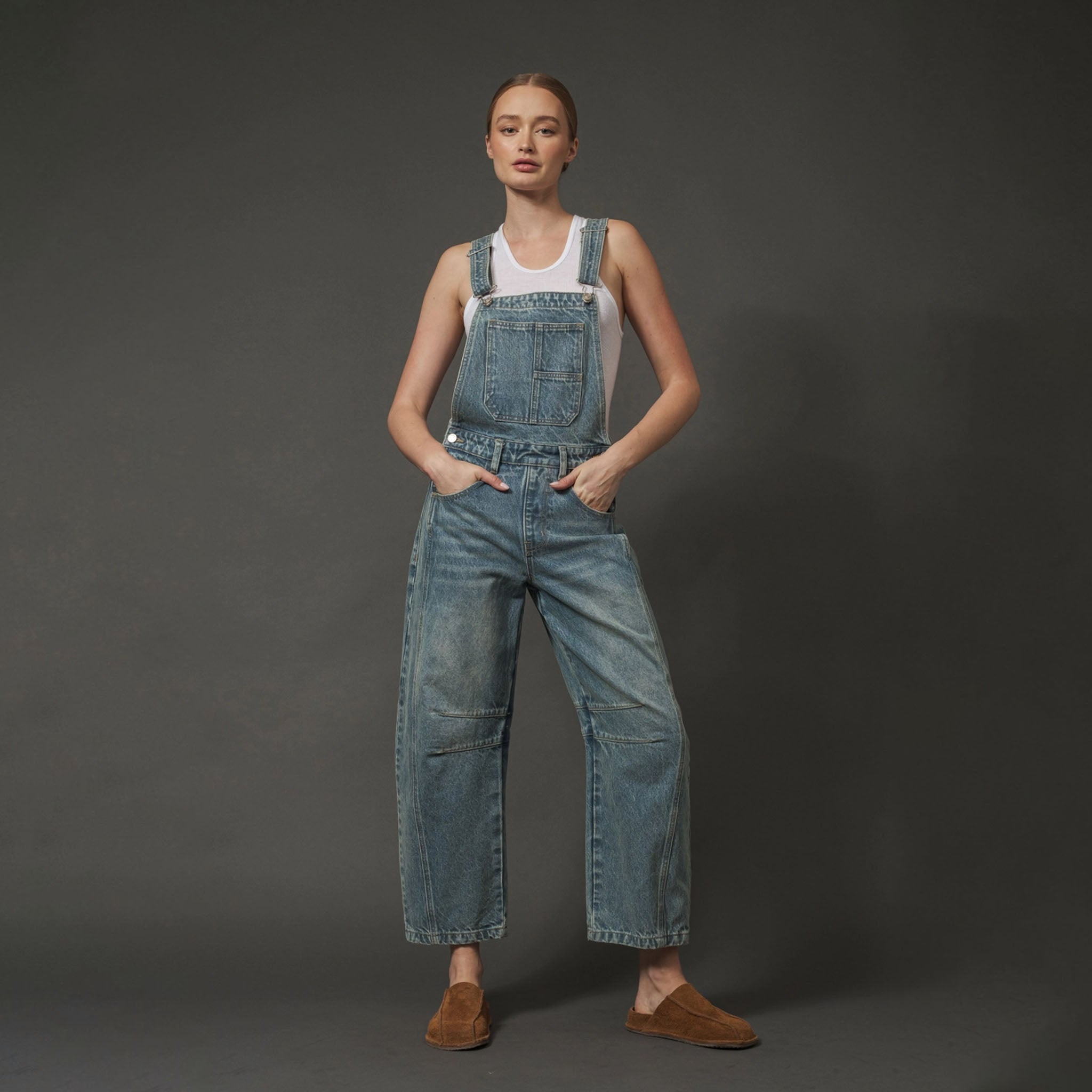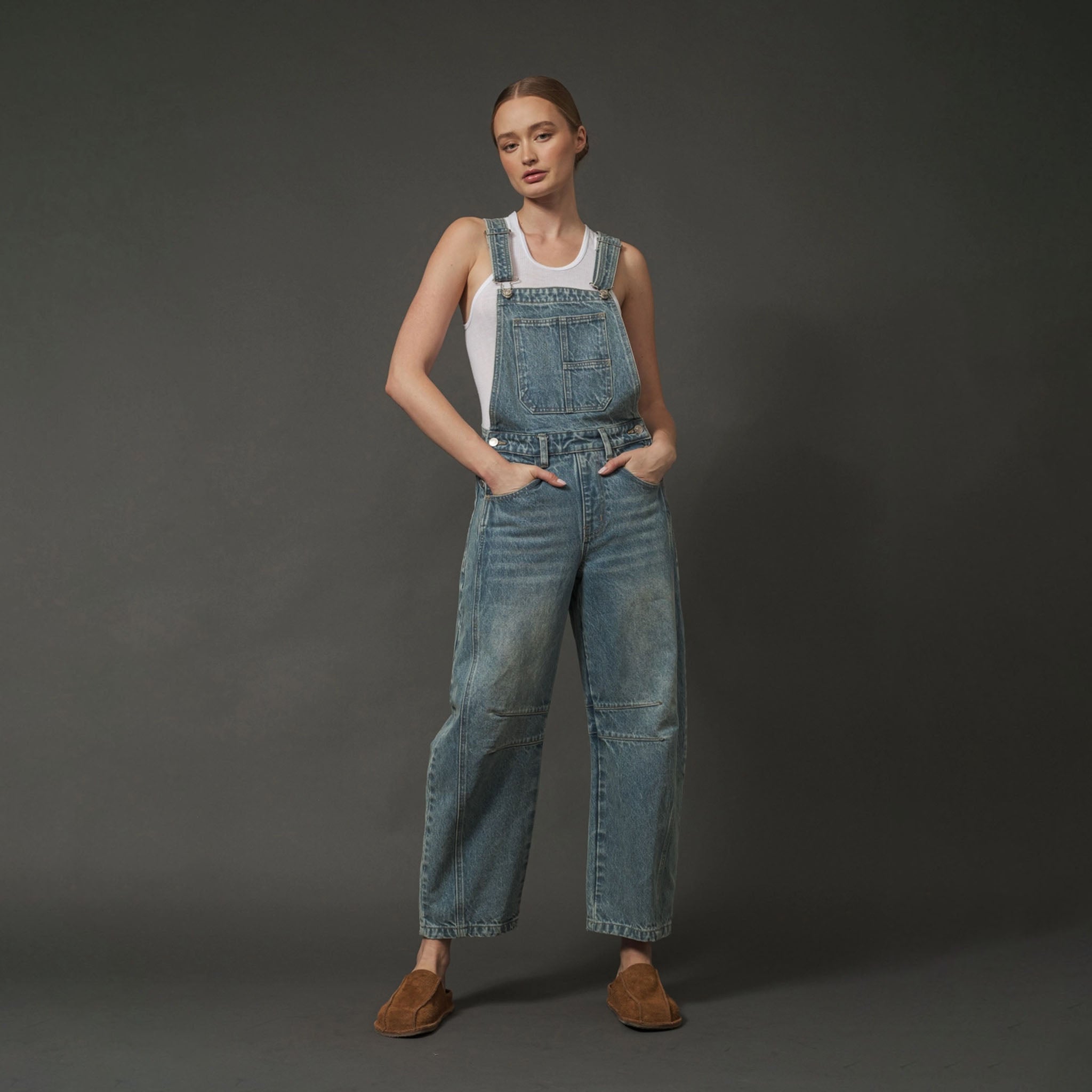 Aaron & Amber Relaxed Fit Overalls in Denim