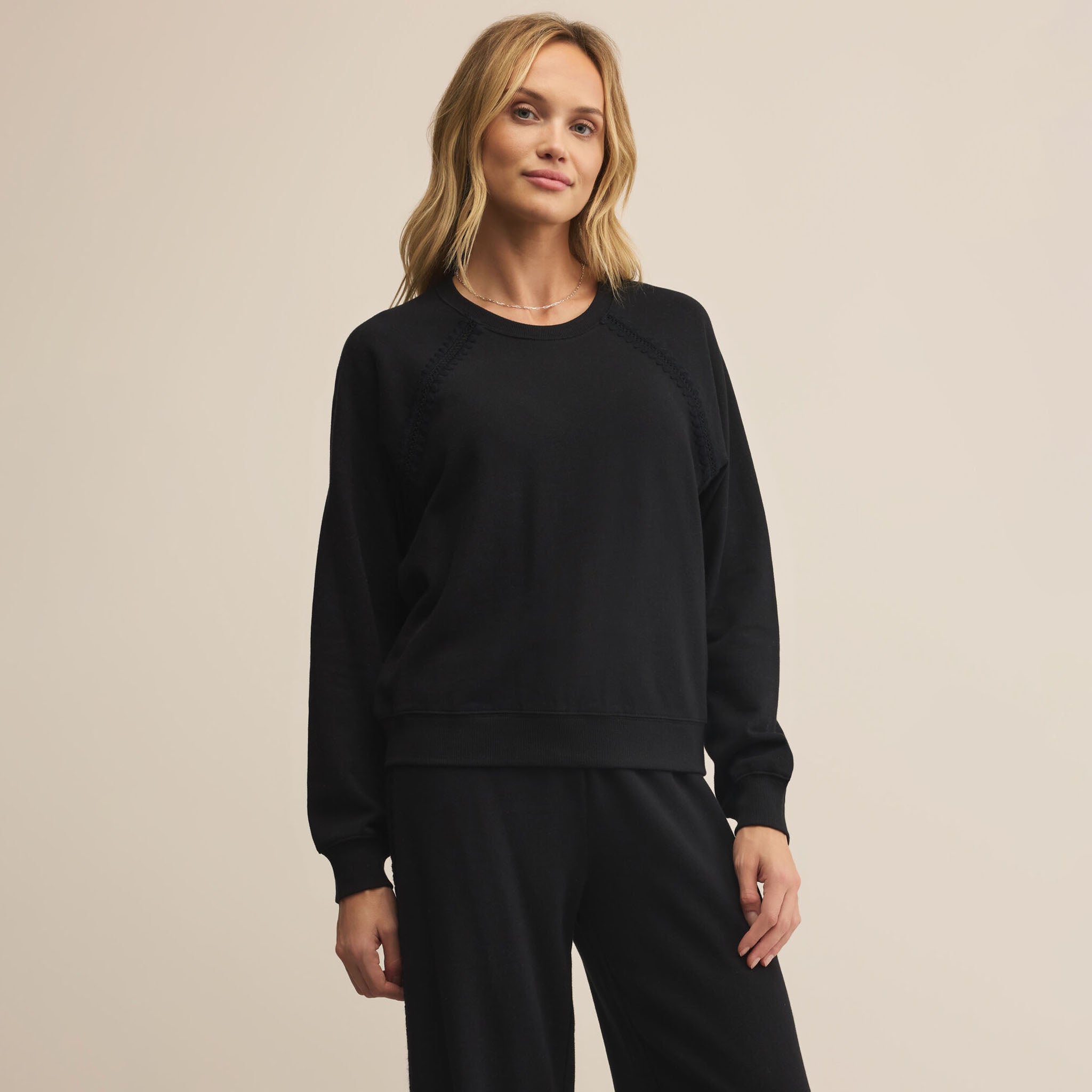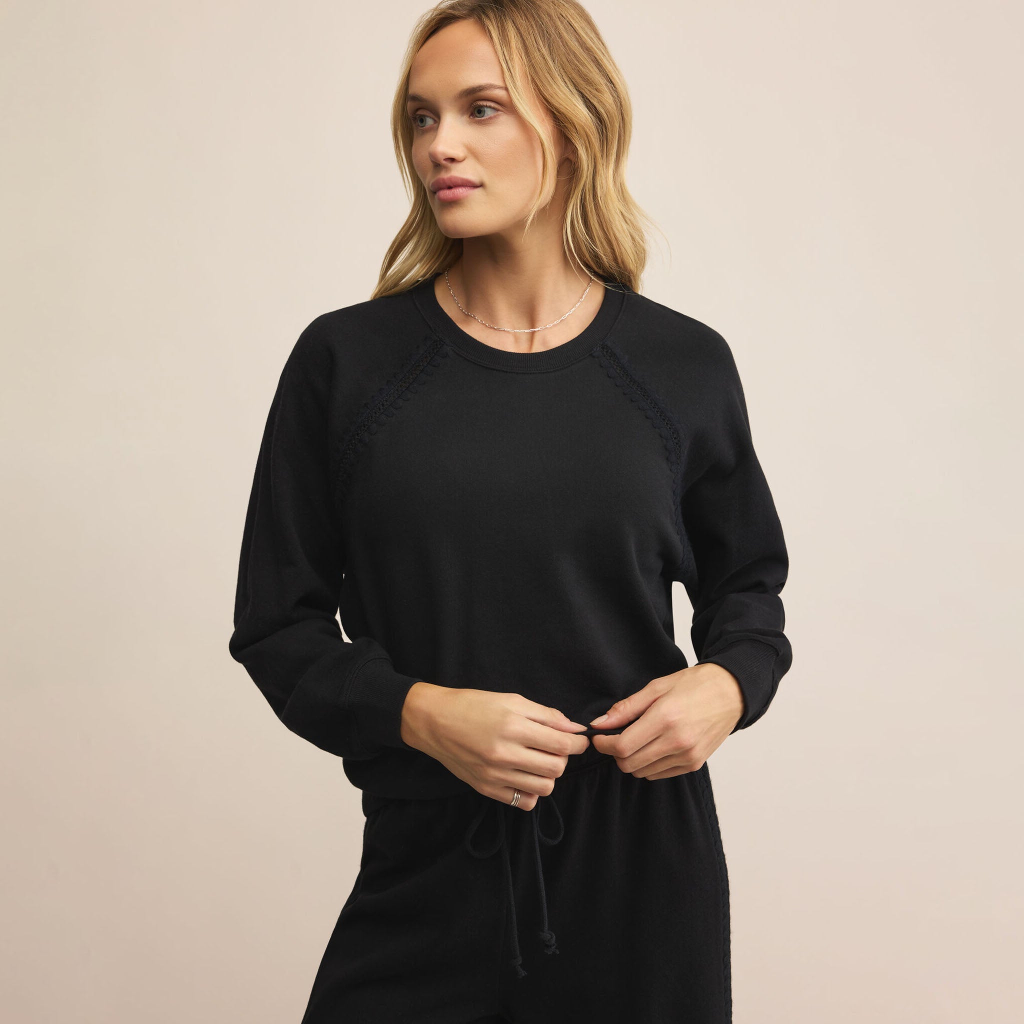 Slip into the Z Supply All Around Sweatshirt in Black for an instant mood boost. This delightful piece sports a timeless crew neck and comfy long sleeves, all made from featherlight yet luxuriously soft 100% cotton French Terry. The heavy soft wash adds a touch of well-loved charm, while the relaxed fit invites you to kick back and relax without sacrificing style. Measuring 23" from shoulder to hem, this sweatshirt is the perfect partner for everything from cozy movie nights to casual brunch dates. Ready to wrap yourself in comfort with a playful edge? This is your new go-to!