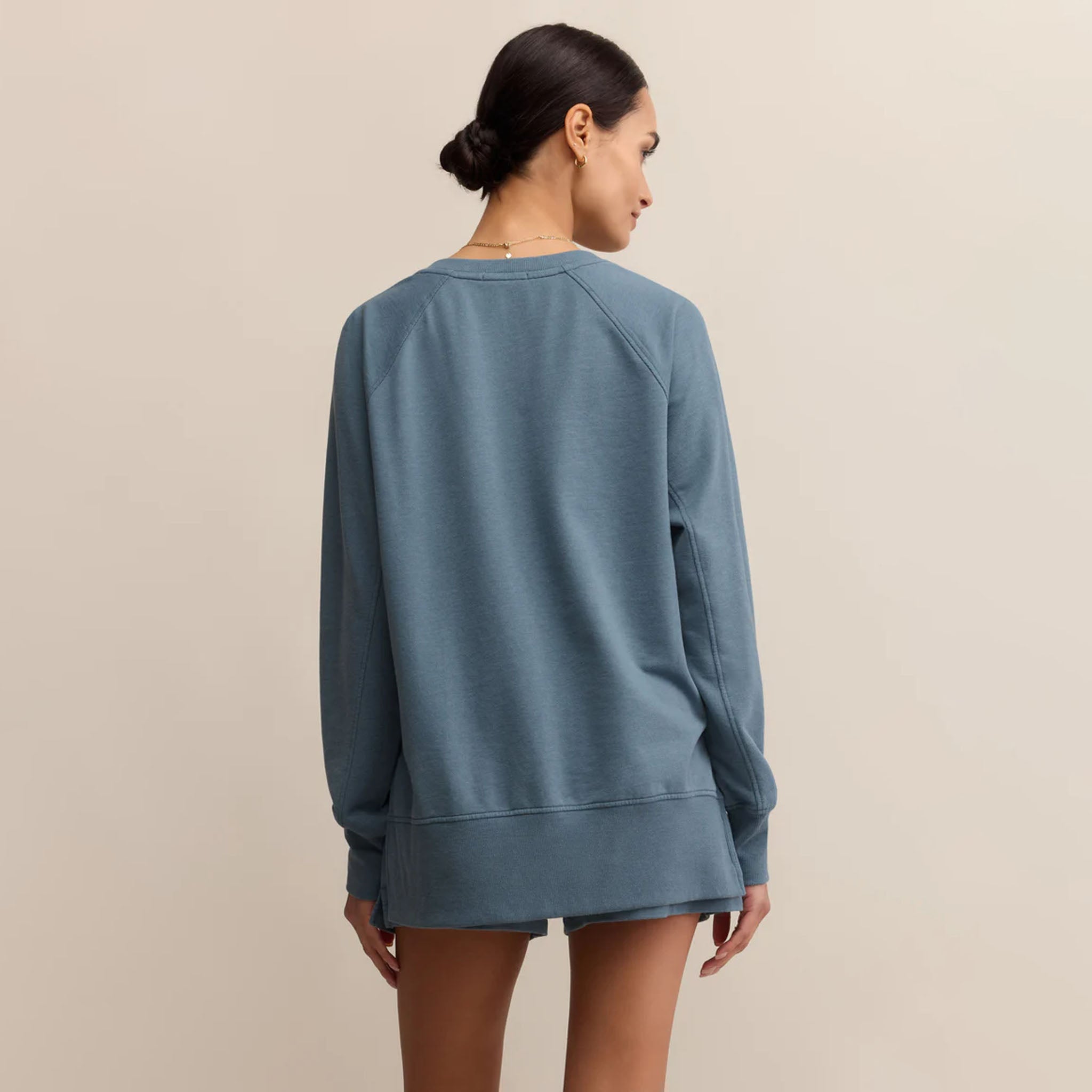 This oversized silhouette is crafted from midweight french terry fabric, featuring signature burnout treatment that gives a soft, lived-in feel that only improves with time. The side vent details and step hem add flattering details that will elevate an otherwise casual look.