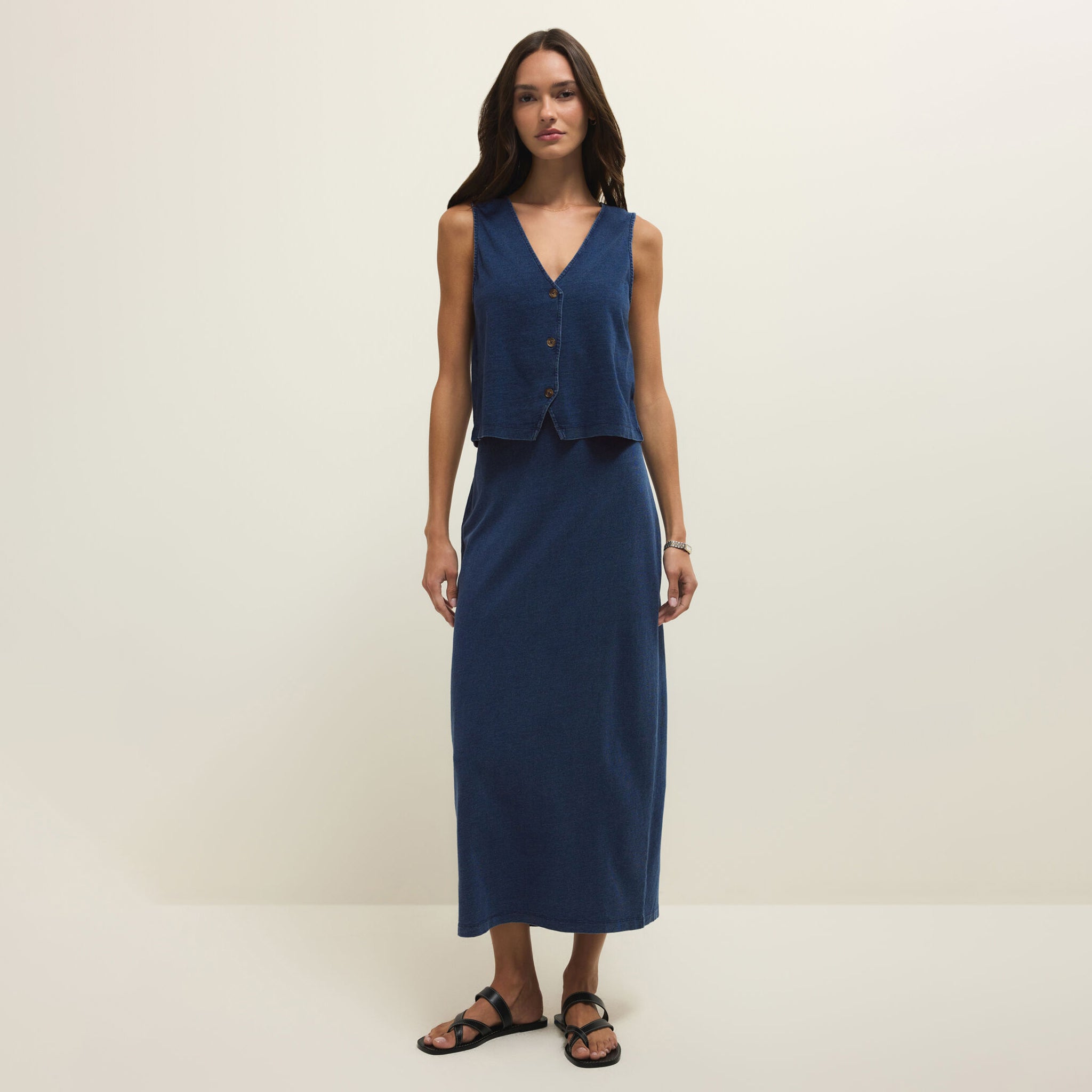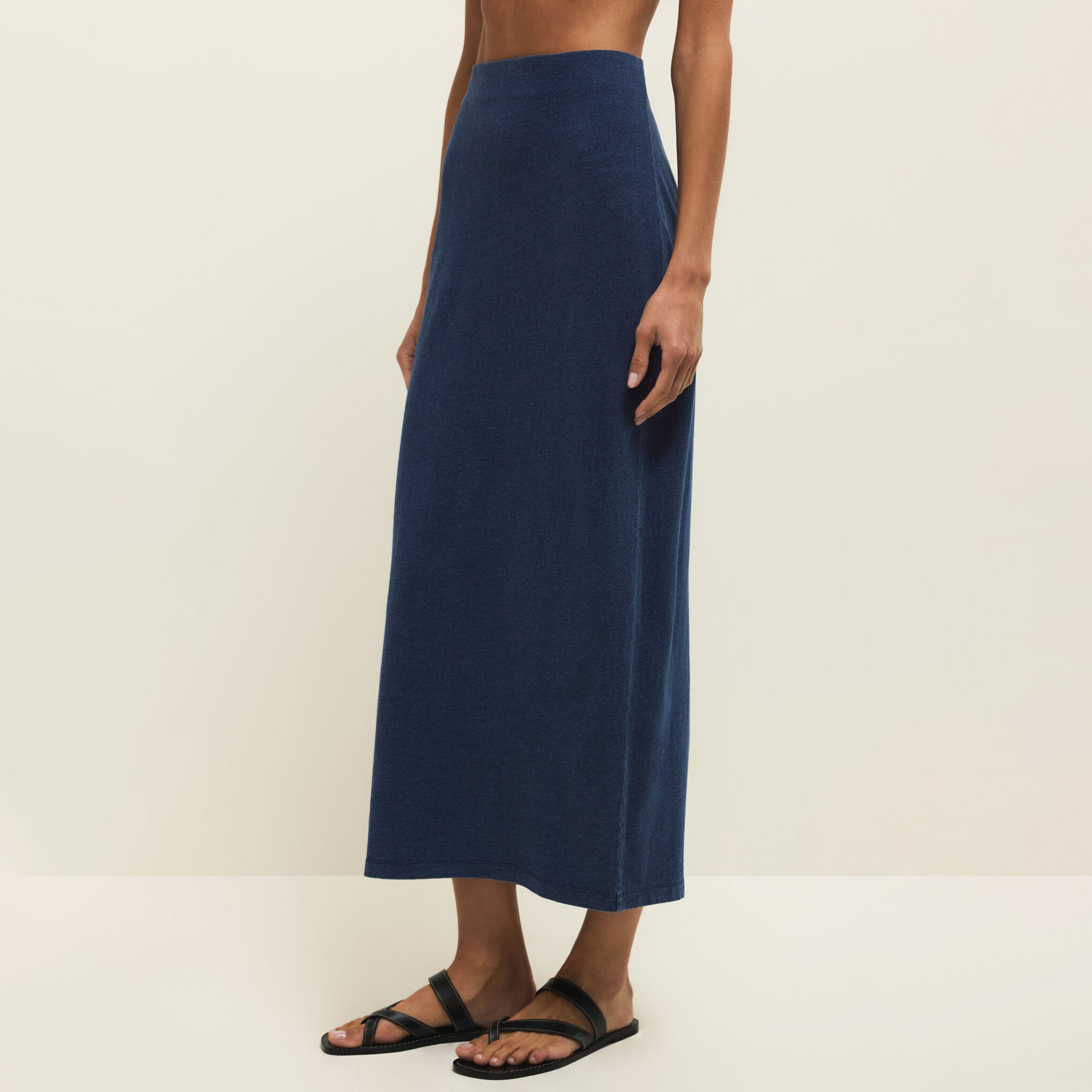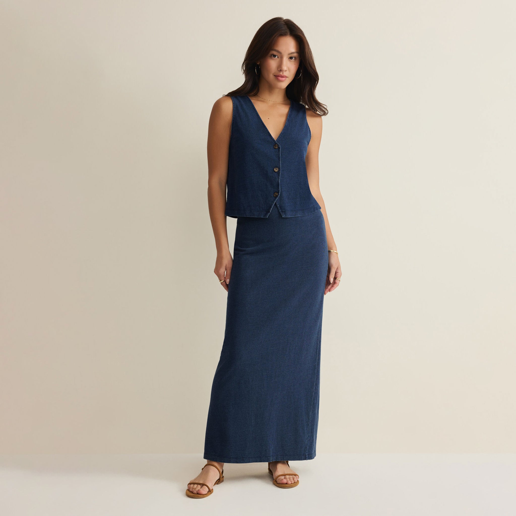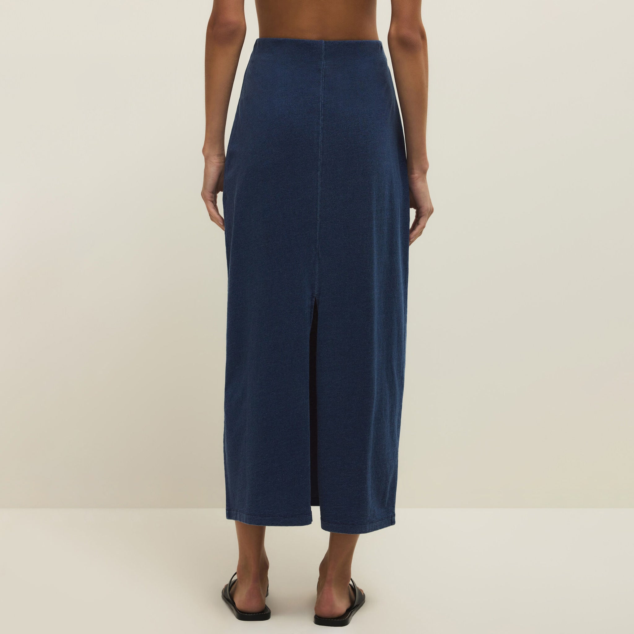 Z Supply Gail Jersey Denim Midi Skirt in Indigo