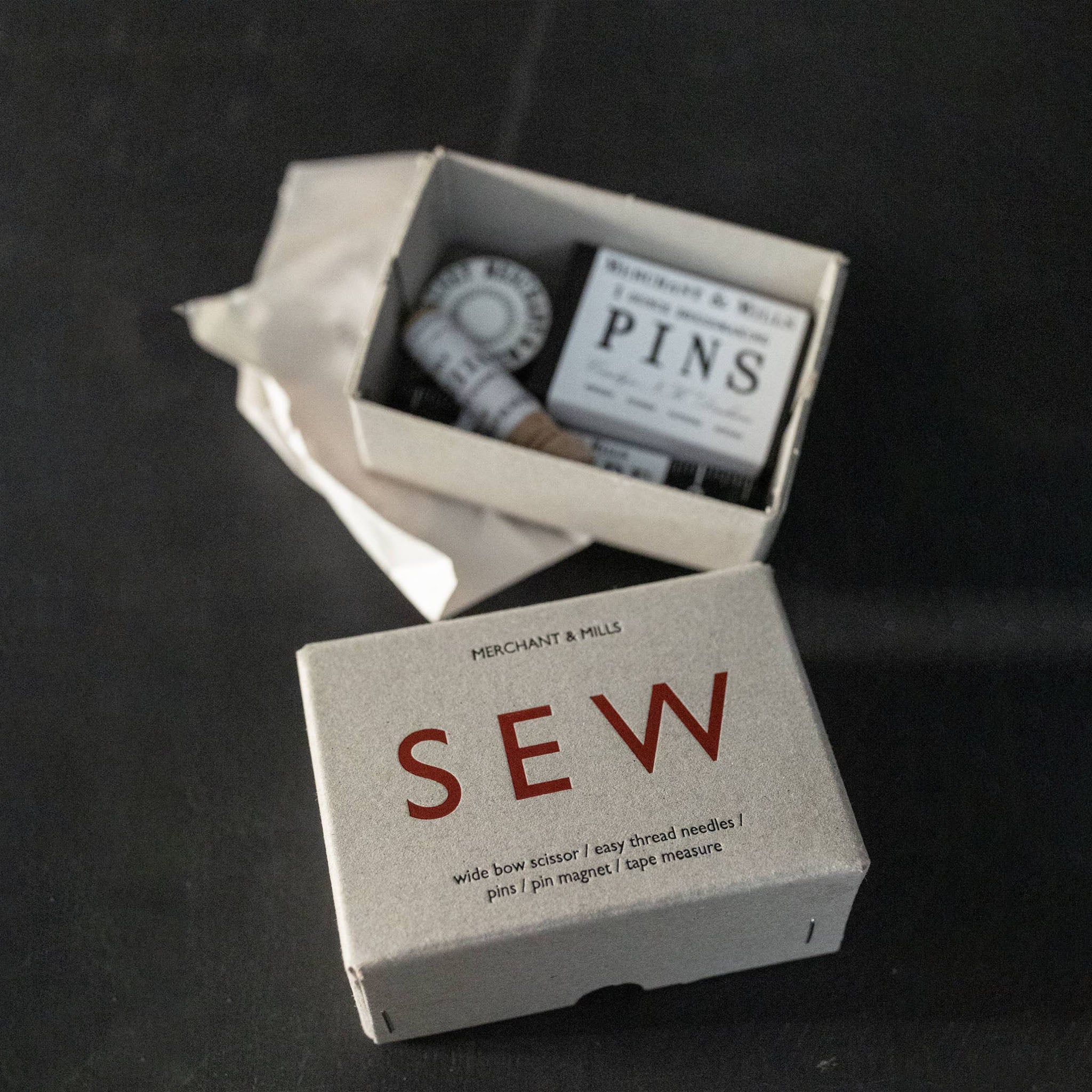Includes: Wide Bow Scissors. Dressmaking Pins. Pin Magnet. Easy Thread Needles. Bespoke Tape Measure.